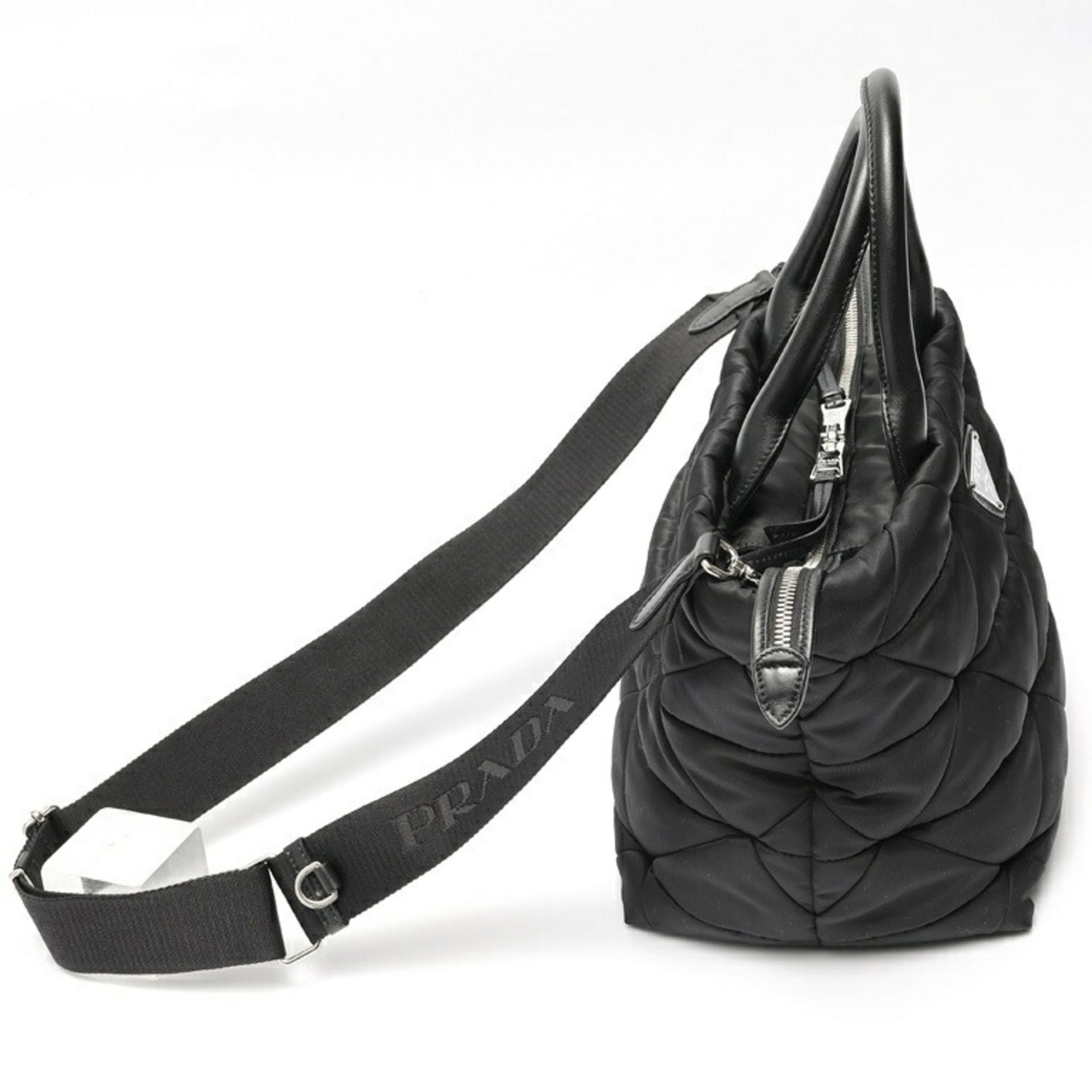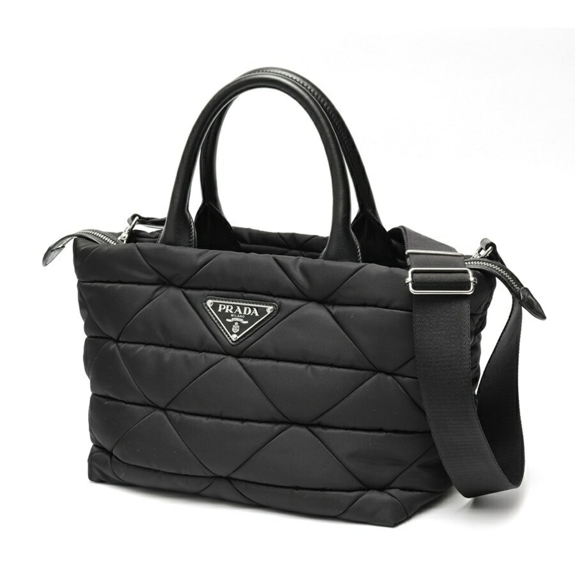 PRADA Medium Padded Re-Nylon x Leather Tote Bag 1BG436 Nylon Black S-158687