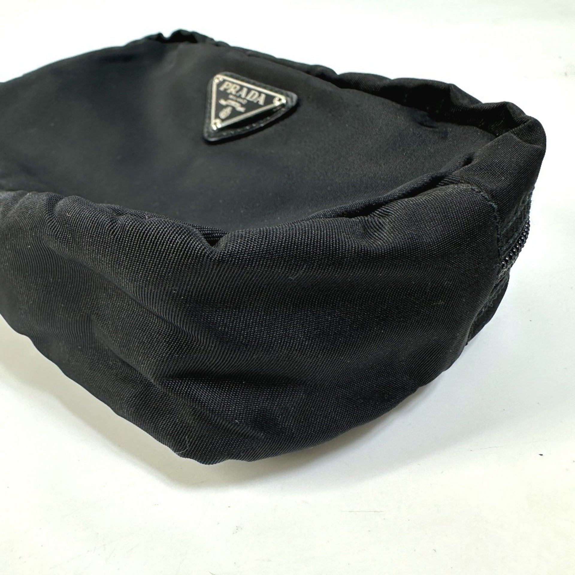 PRADA NM340X Triangle Logo Plaque Makeup Pouch, Nylon, Women\'s, Black