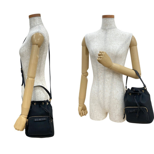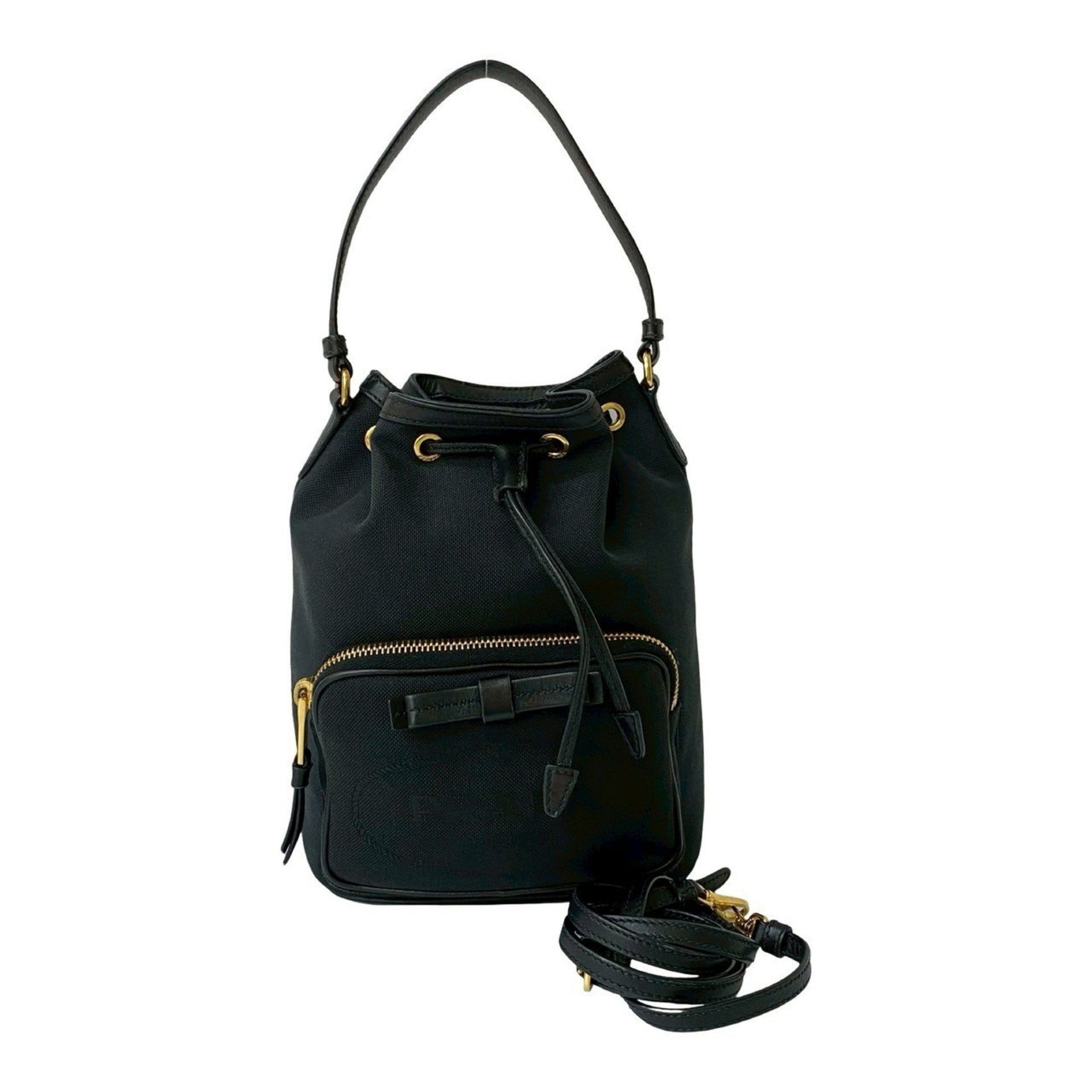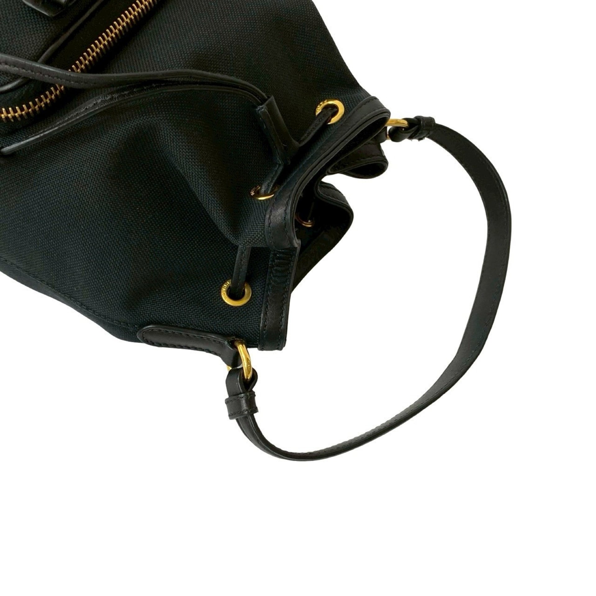 PRADA Prada Duetto Logo Canvas and Leather Drawstring 2-Way Handbag/Shoulder Bag, Black, 63146
