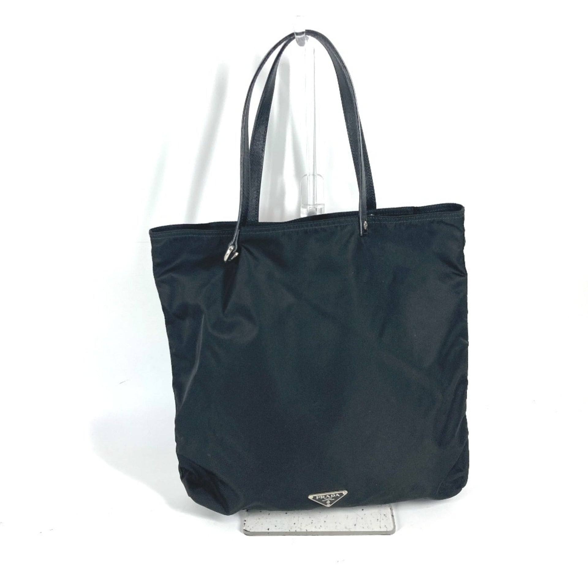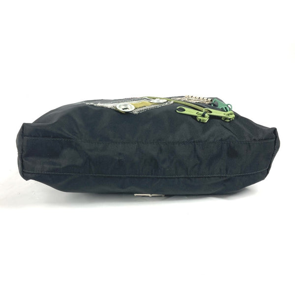 PRADA Prada Embroidered Flower Metal Fittings Shoulder Bag Handbag Tote Nylon Leather Women\'s Black