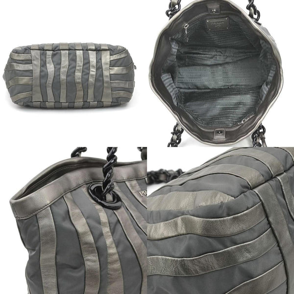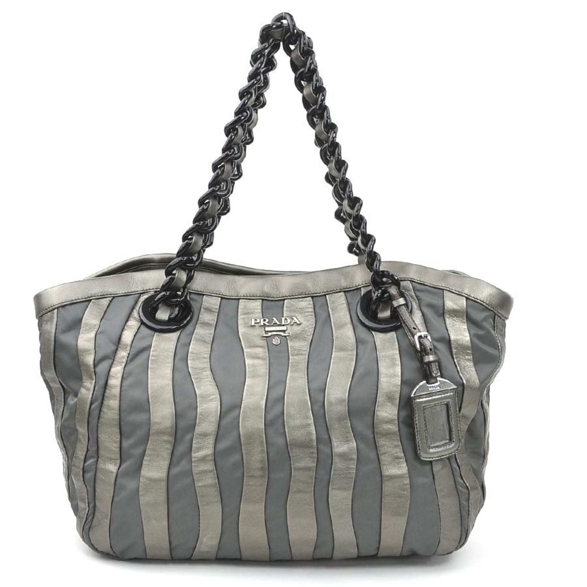 Prada PRADA handbag, nylon and leather, gray, women\'s, BR3998, 56245g