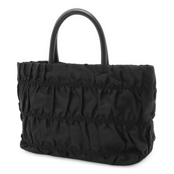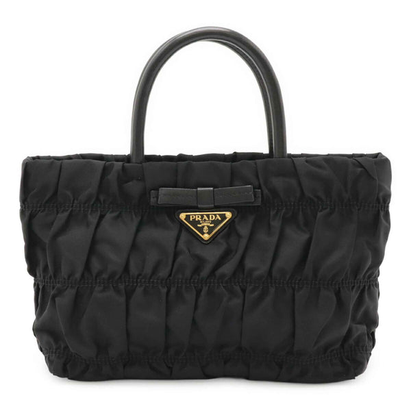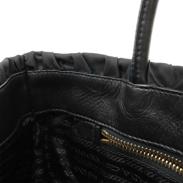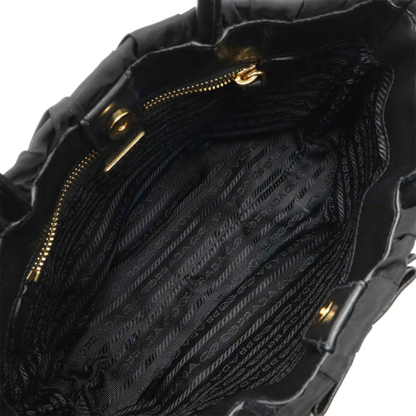 PRADA Prada Handbag, Ribbon Gathered Nylon and Leather, Black, BN1675