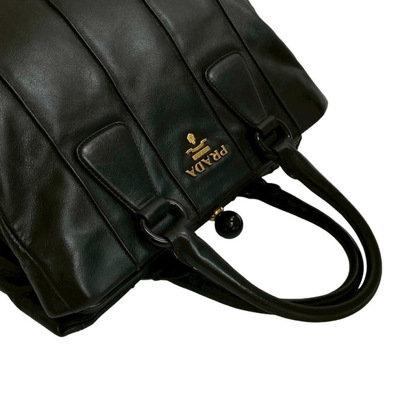 PRADA Prada Logo Gold Hardware Leather Genuine Clasp Handbag Tote Bag Boston Black 006-3