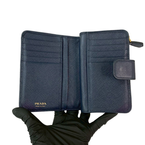 PRADA Prada logo hardware, Saffiano leather zippered bifold wallet with card case, navy blue, 26374