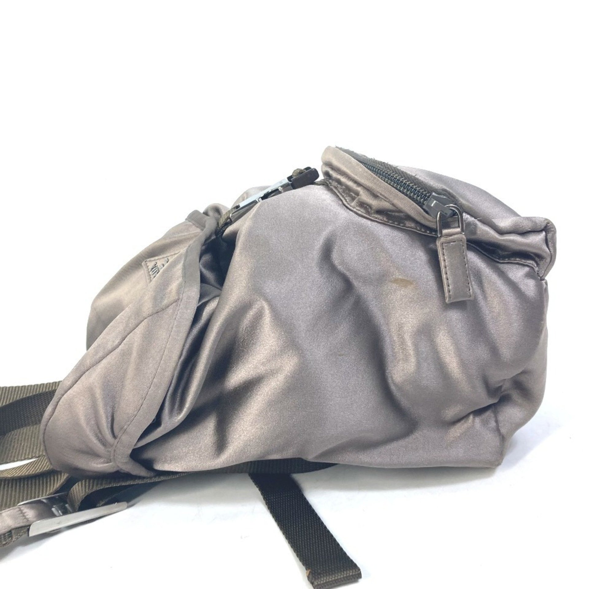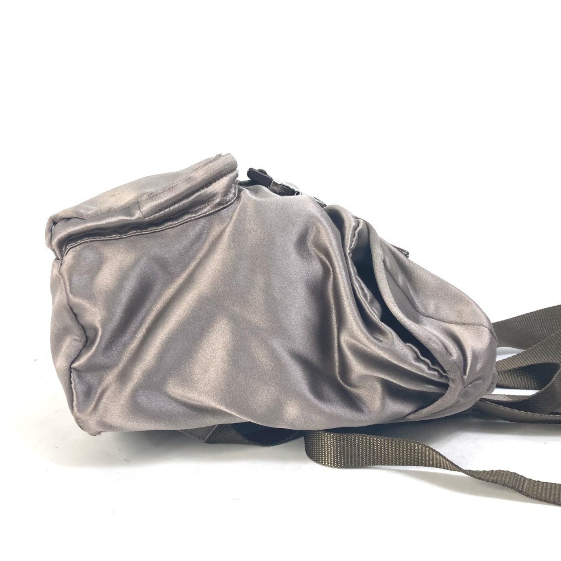 PRADA Prada logo plate triangle backpack, satin, women\'s, brown