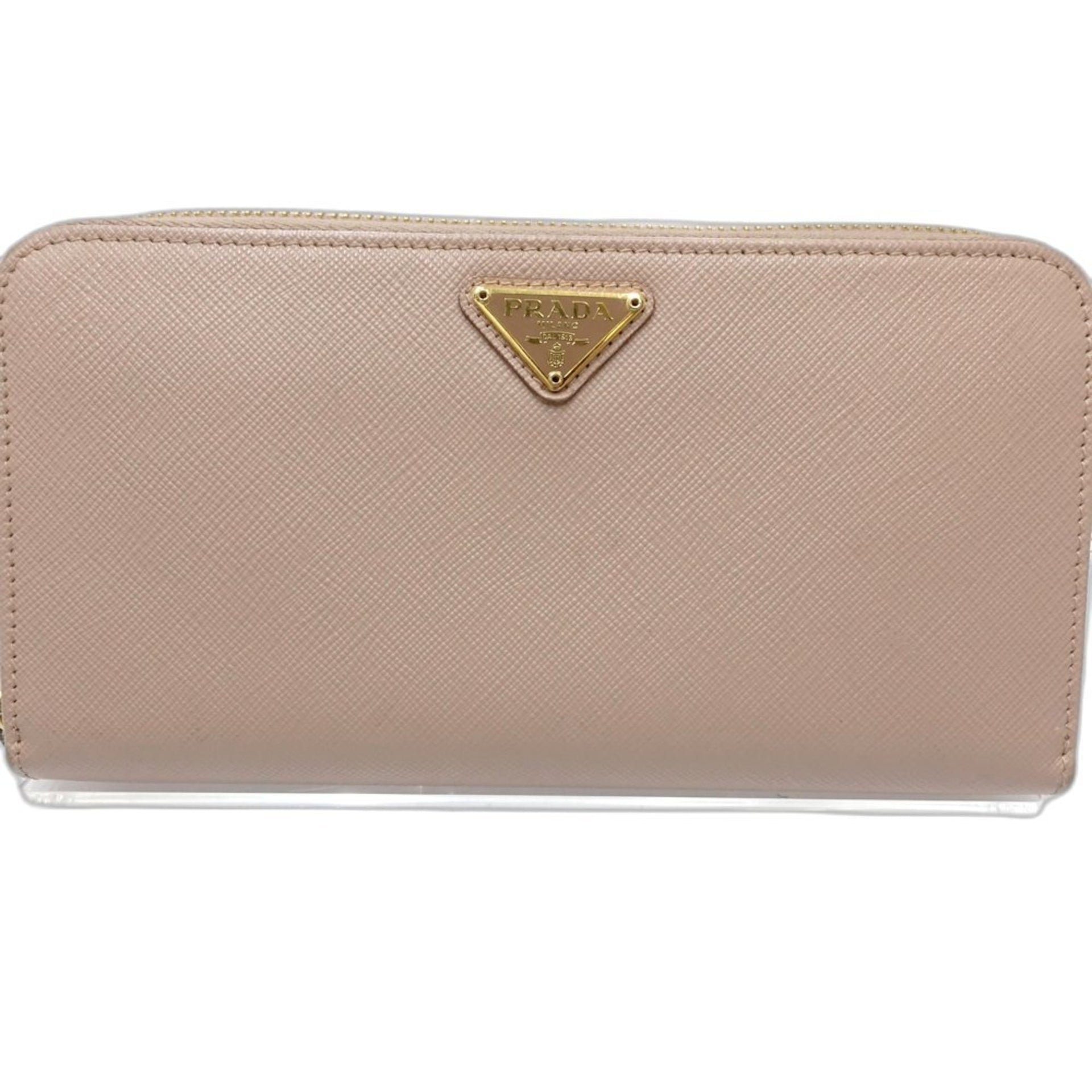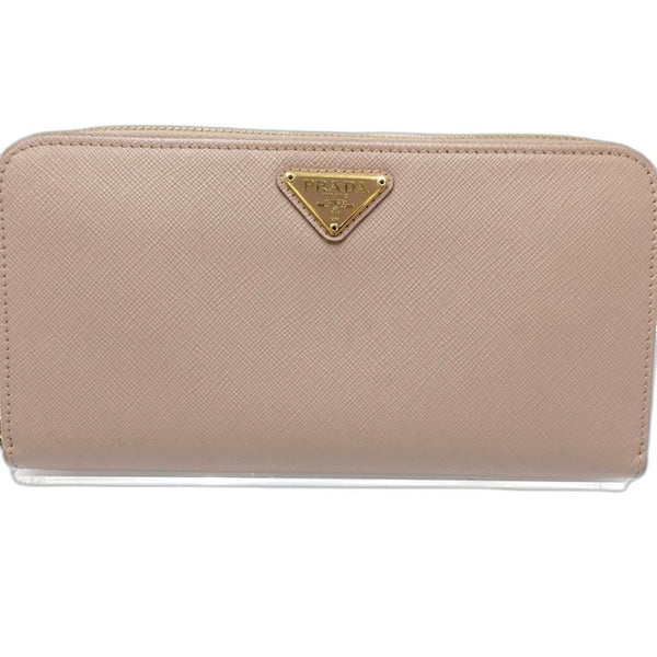 PRADA Prada Long Wallet 1ML506 Women\'s Round Saffiano Triangle CAMMEO (Beige) 181401
