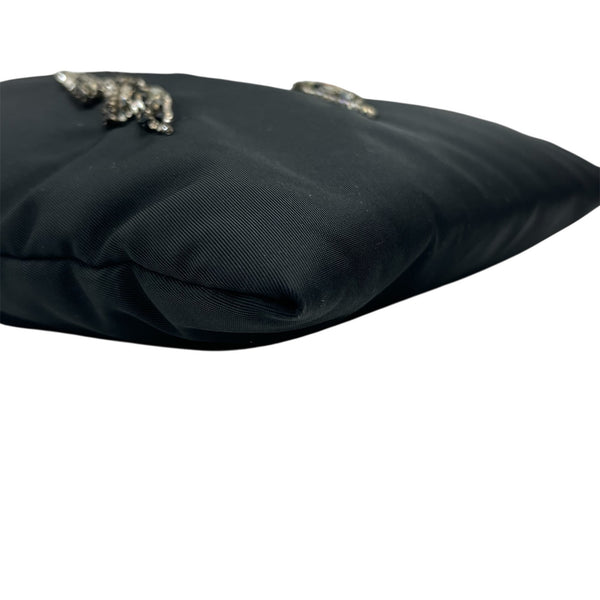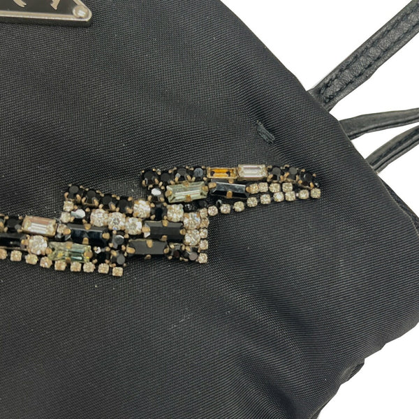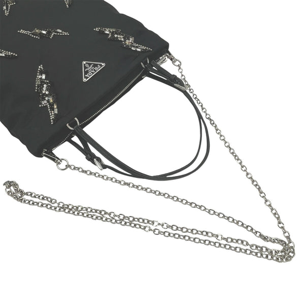 PRADA Prada Nylon Bag with Beads, 2-Way Handbag/Shoulder Bag, Black, Triangle, Women\'s