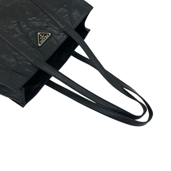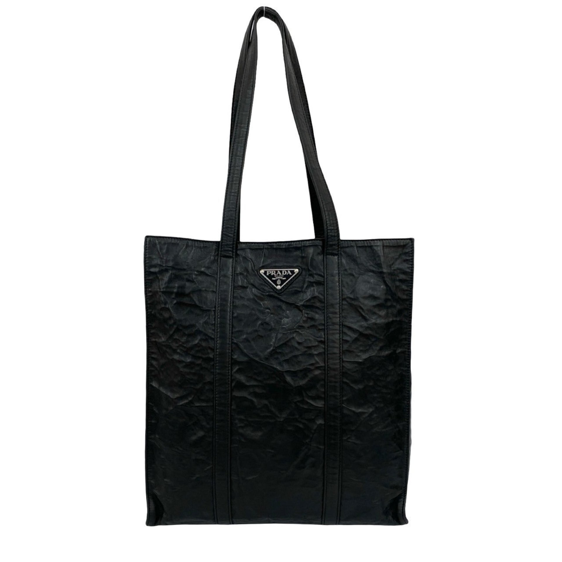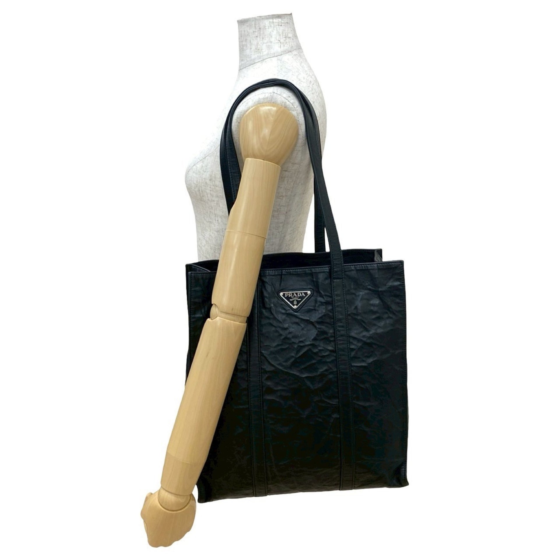 PRADA Prada Triangle Logo Hardware Leather Tote Bag, Semi-Shoulder Handbag, Black, 34043