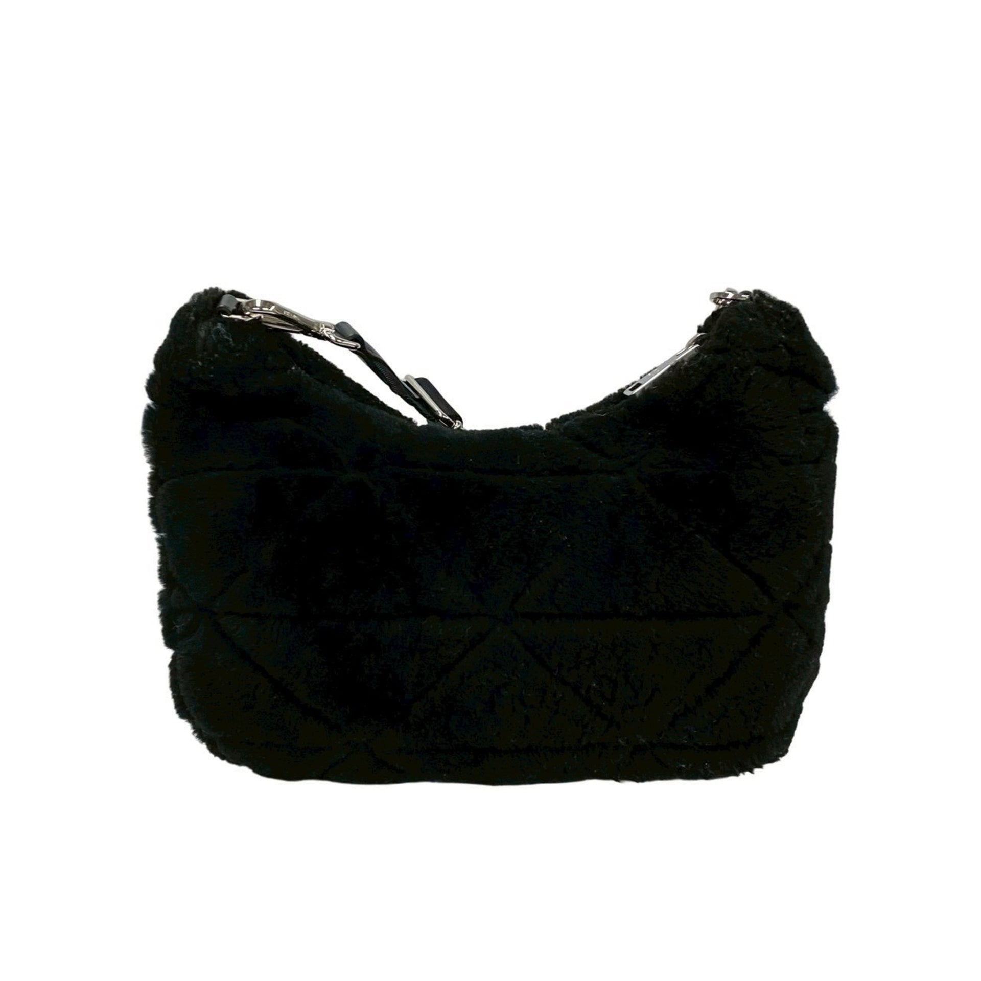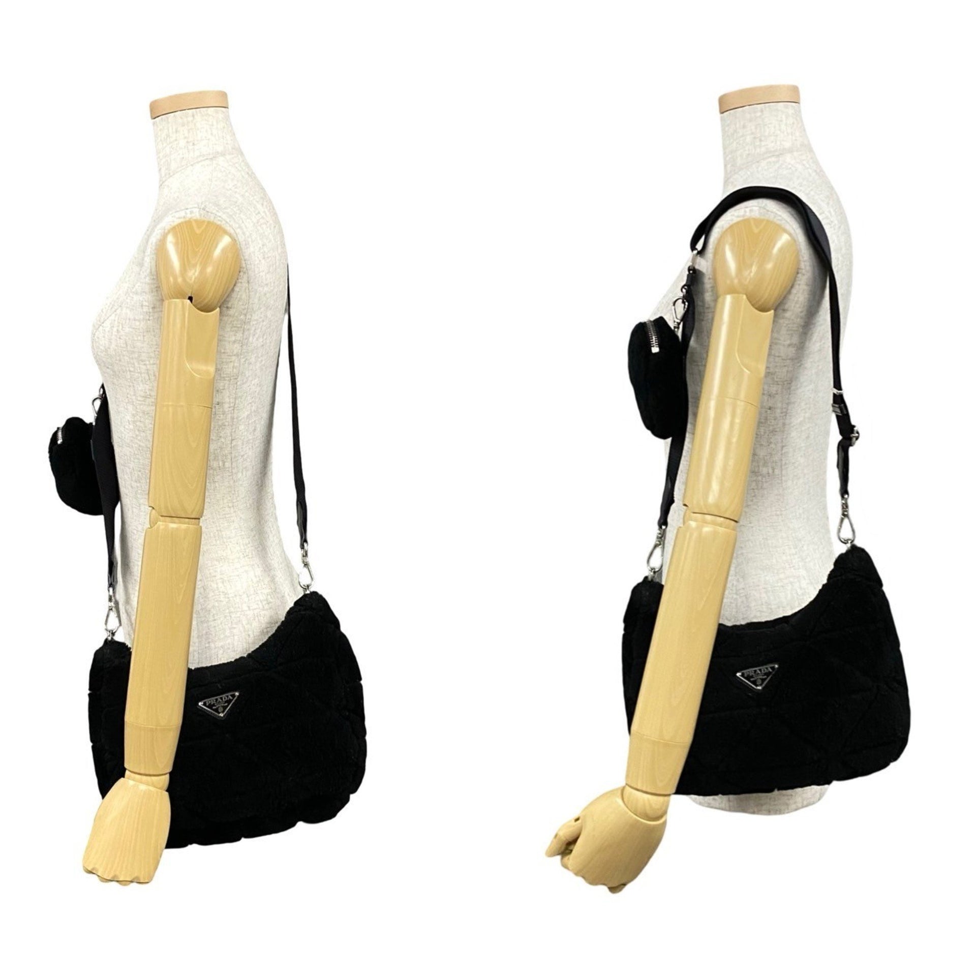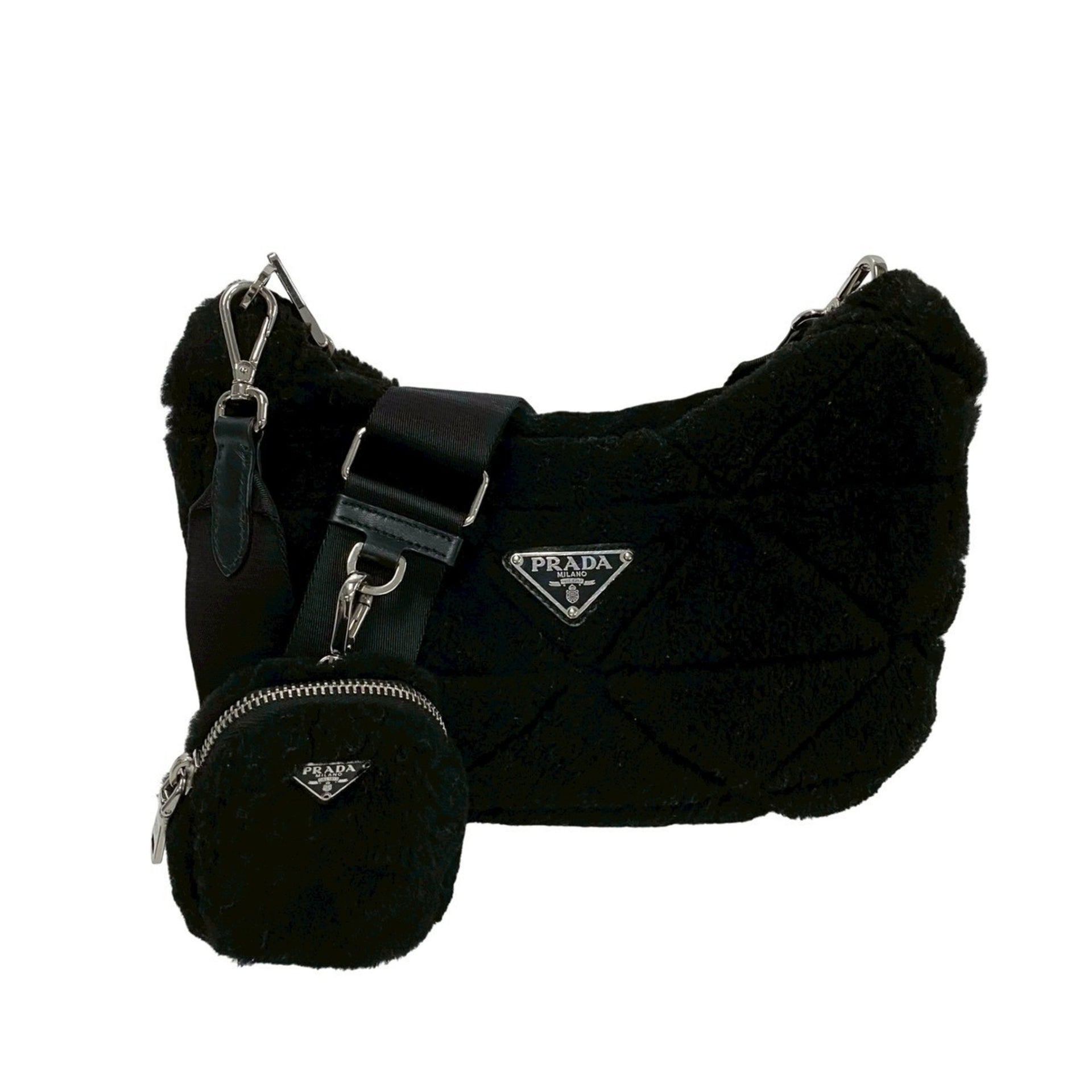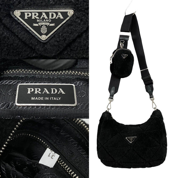 PRADA Prada triangle logo metal hardware mouton fur nylon leather shoulder bag pochette sacoche black 908-5