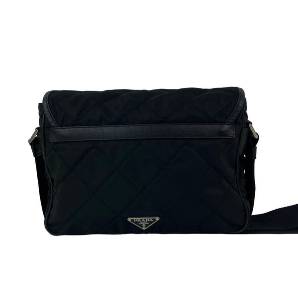 PRADA Prada Triangle Logo Plate with Metal Fittings, Quilted Tessuto Nylon Shoulder Bag/Pochette/Sacoche, Black 033-3
