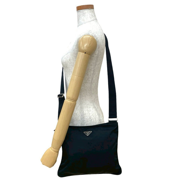 PRADA Prada Triangle Logo Silver Hardware Plate Tessuto Nylon Shoulder Bag Pochette Sacoche Black 24269