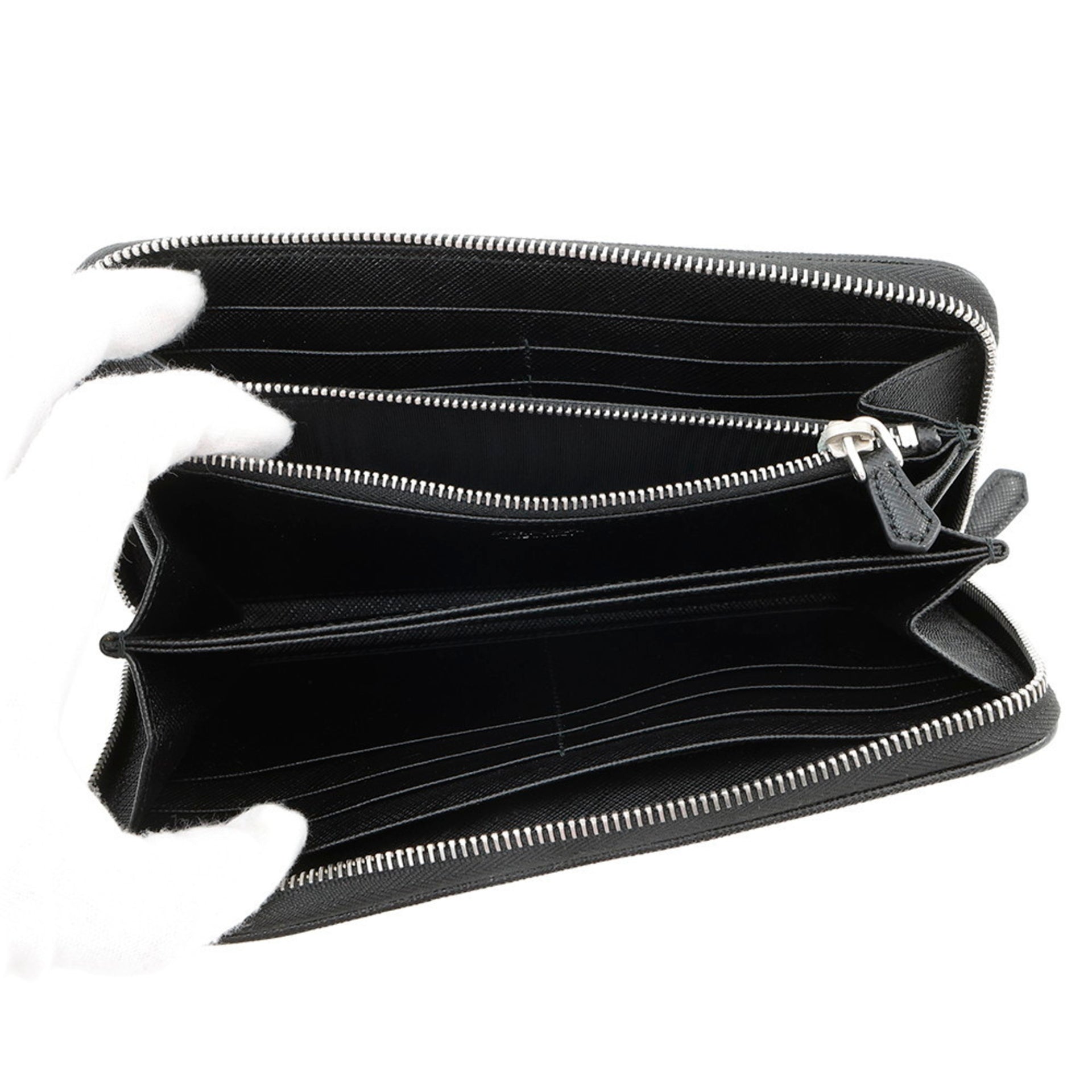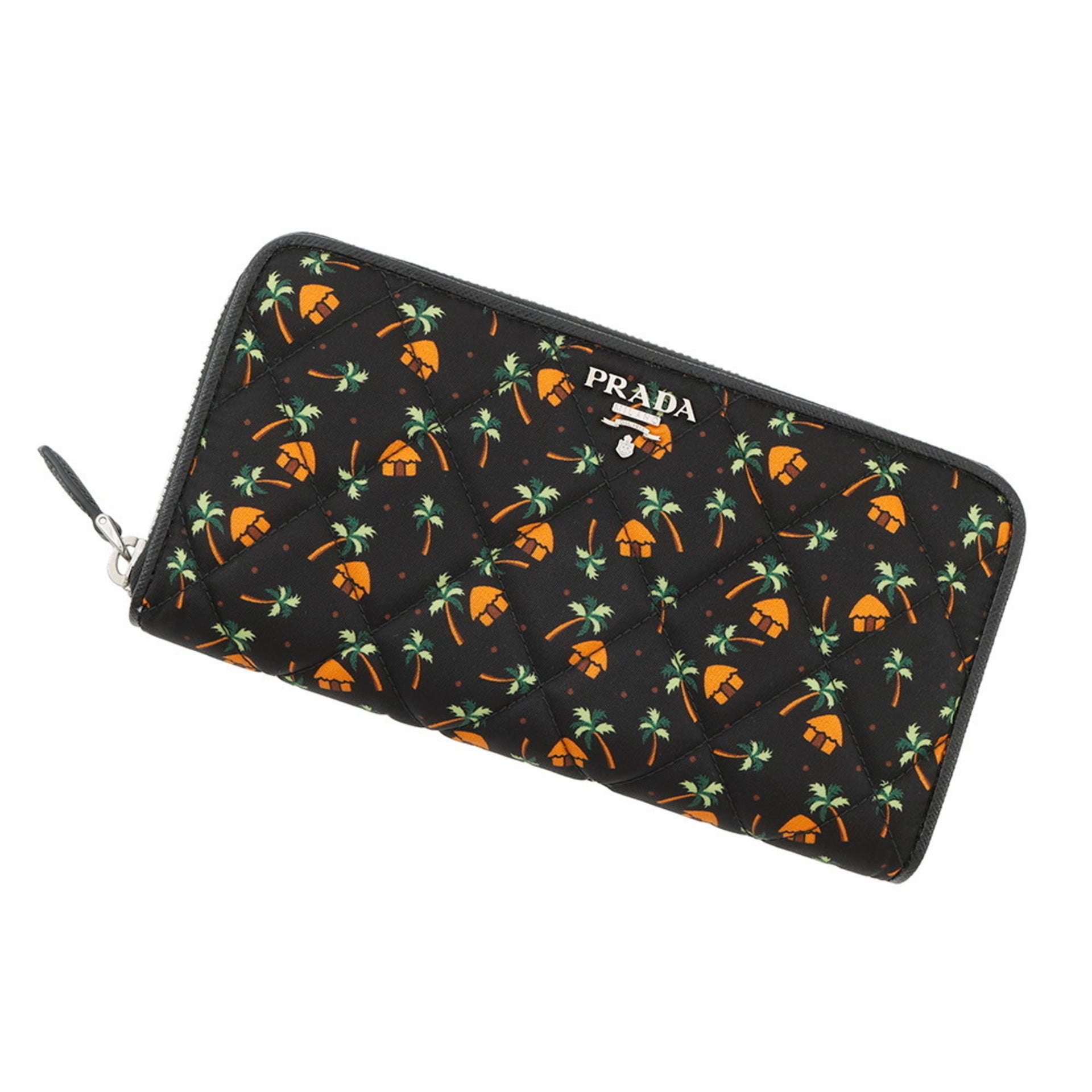 Prada Quilted Round Long Wallet with Palm Tree Design, Black