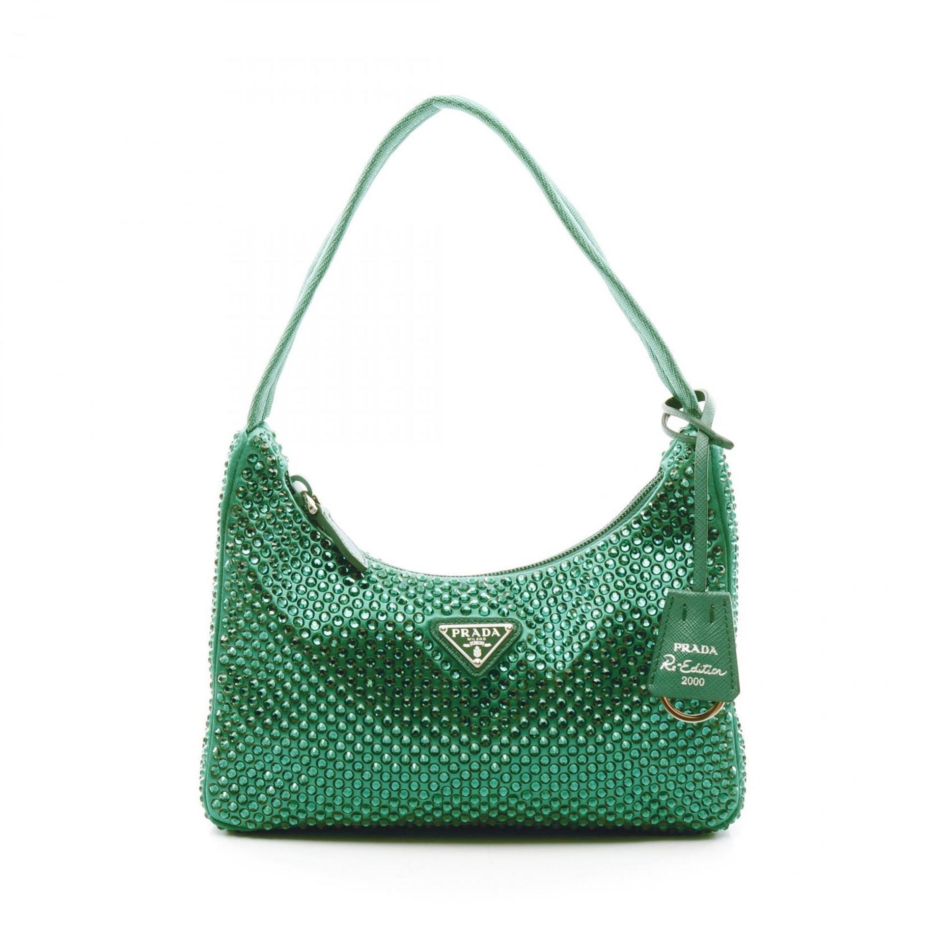 PRADA Re-Edition 2AWL CRYSTAL Handbag Fabric Crystal Women\'s Green 1BC515