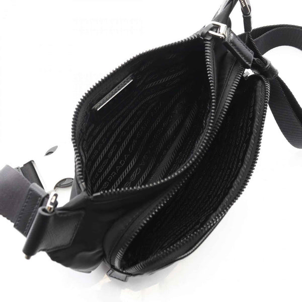 Prada Re-Nylon Shoulder Bag in Saffiano Leather and Nylon, Black, Men\'s, 2VH128
