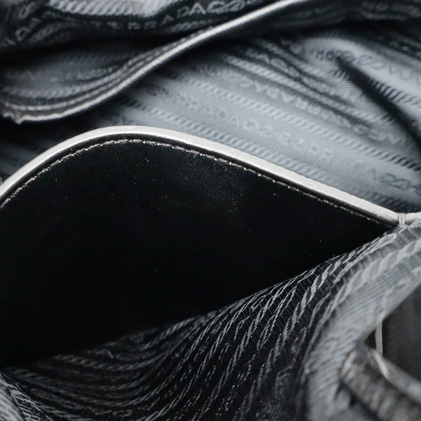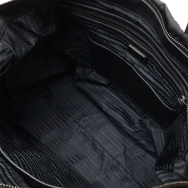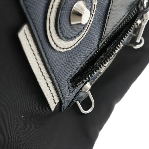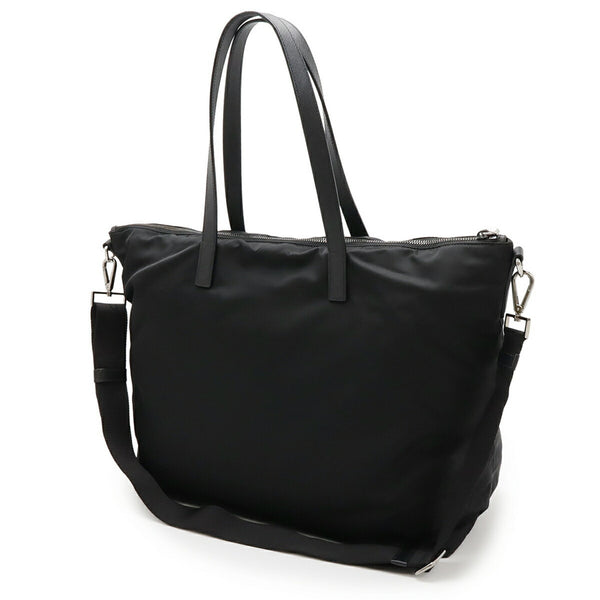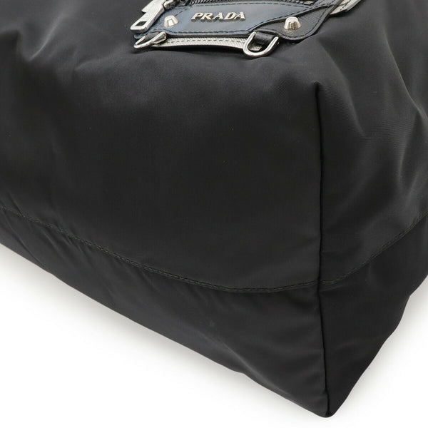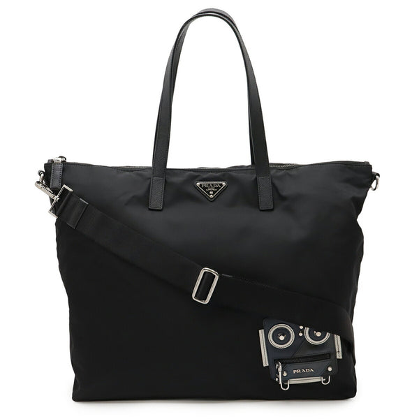PRADA Robot Triangle Tote Bag, Large Shoulder Nylon and Leather, Black, 2VG024
