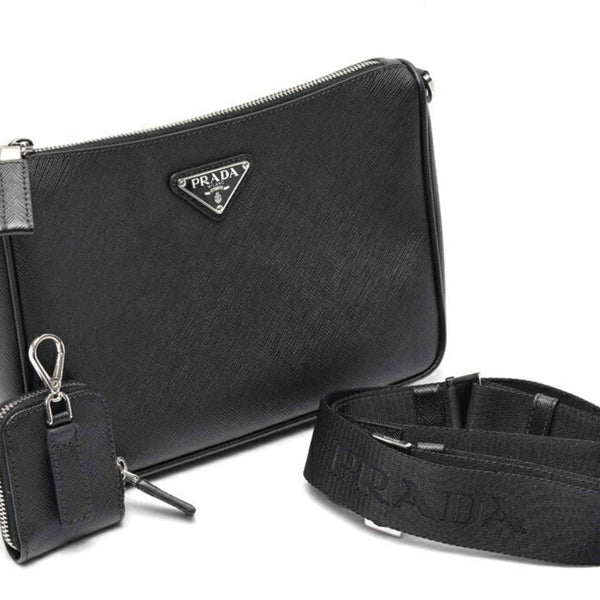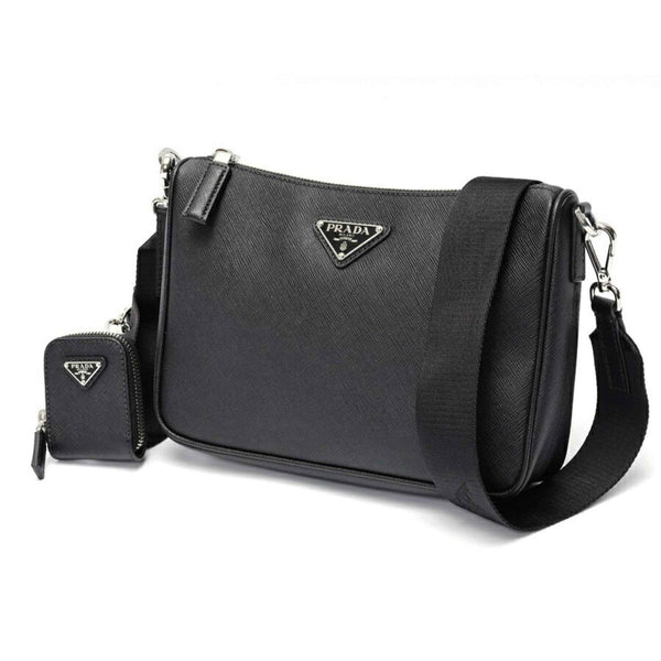 PRADA Saffiano Leather Shoulder Bag 2VH113 Black S-158966
