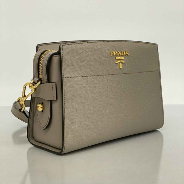 Prada Saffiano Leather Shoulder Bag, Gray, Women\'s