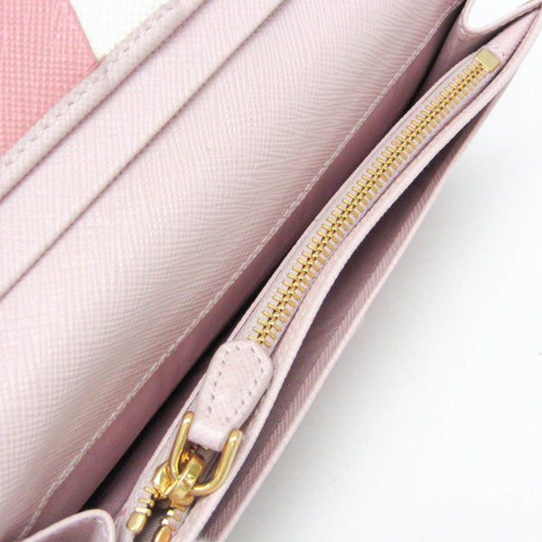Prada Saffiano Multicolor 1MV025 Women\'s Leather Long Wallet (bi-fold) Pink