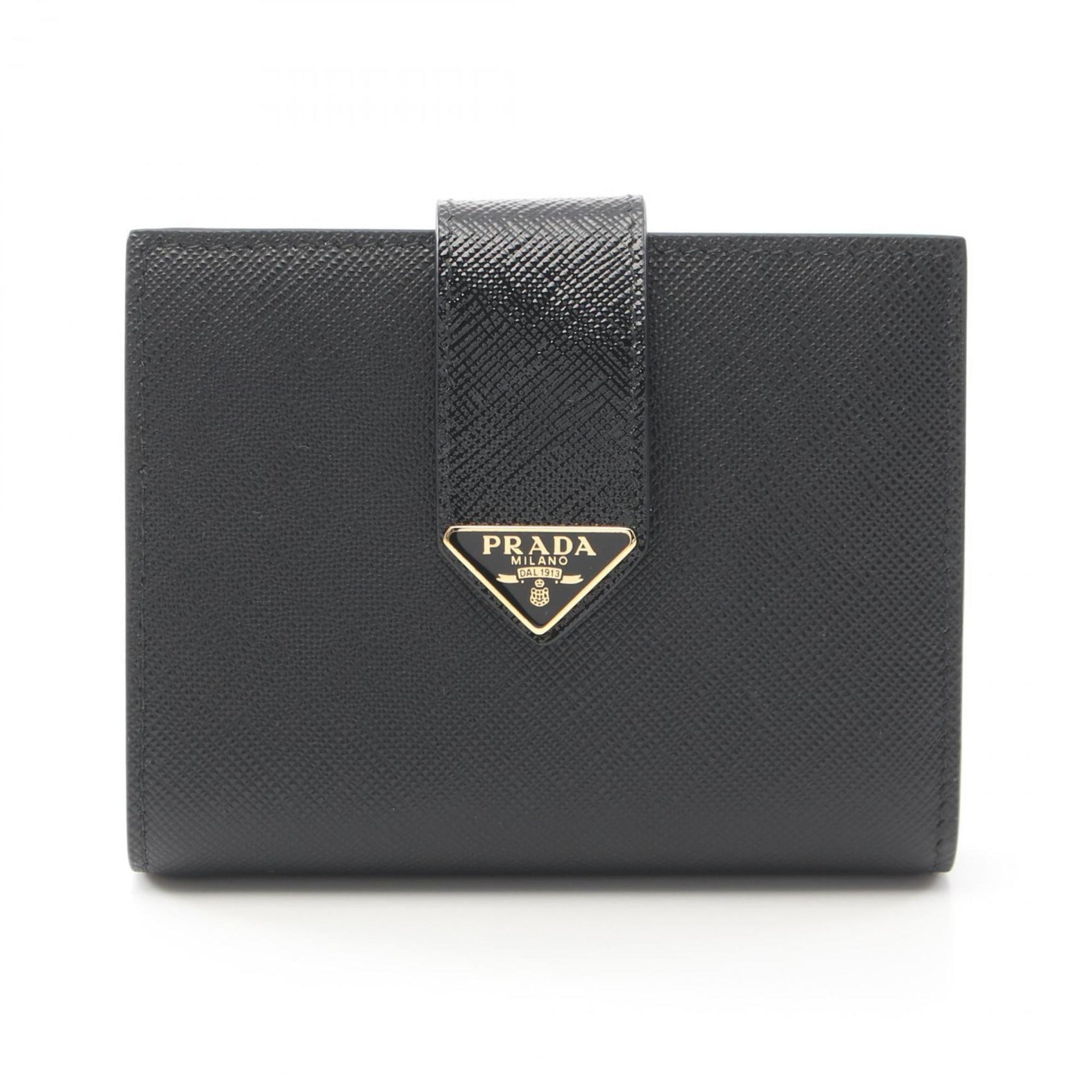 PRADA SAFFIANO TAB LU Bi-fold Wallet Saffiano Leather Women\'s Black 1MV2042C7XF0002