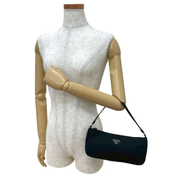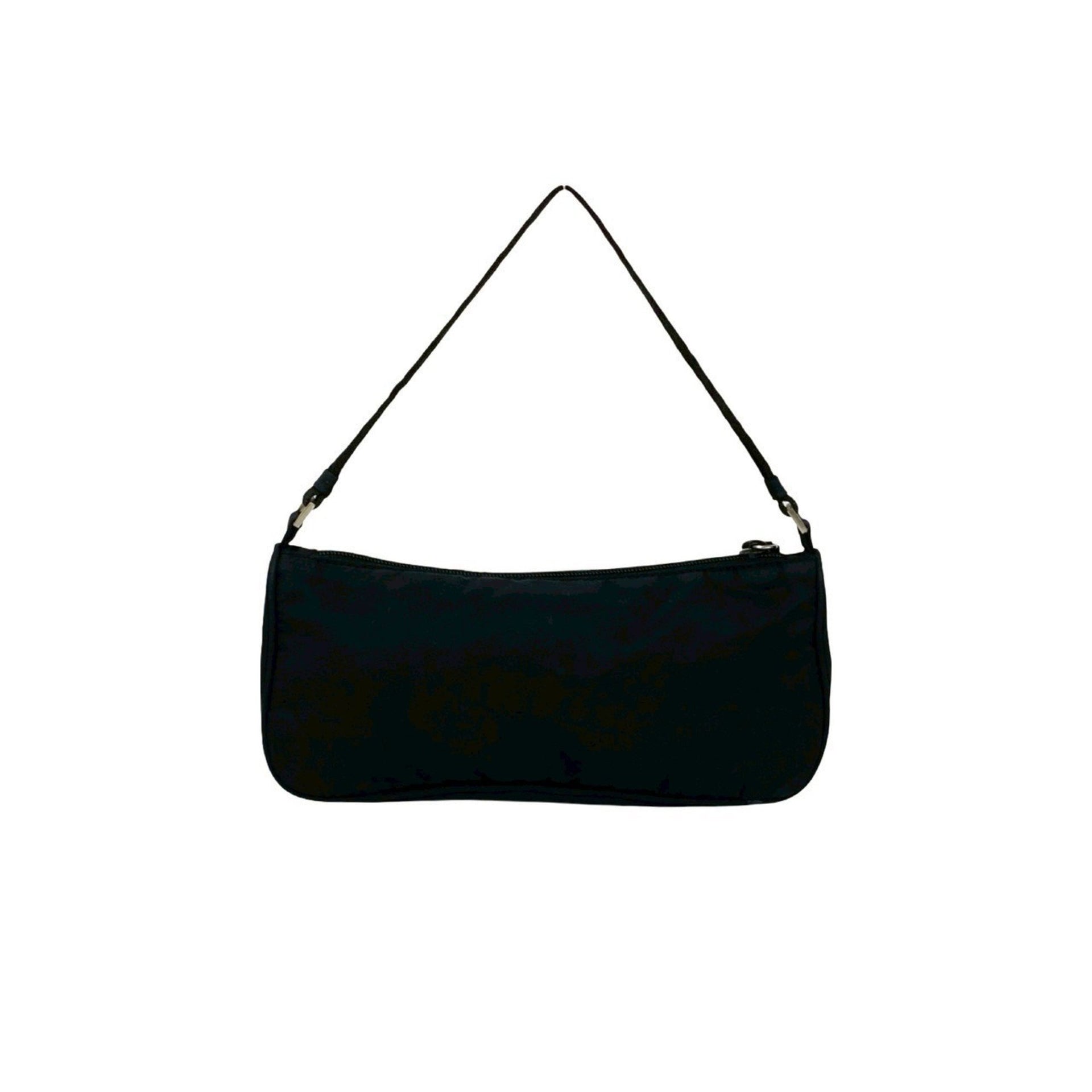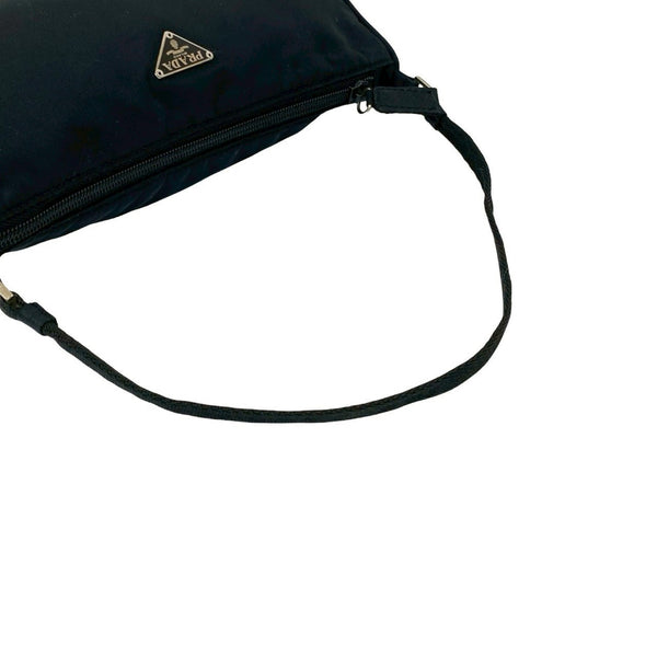 PRADA Tessuto nylon mini handbag with triangle logo and silver hardware plaque, black, 09089