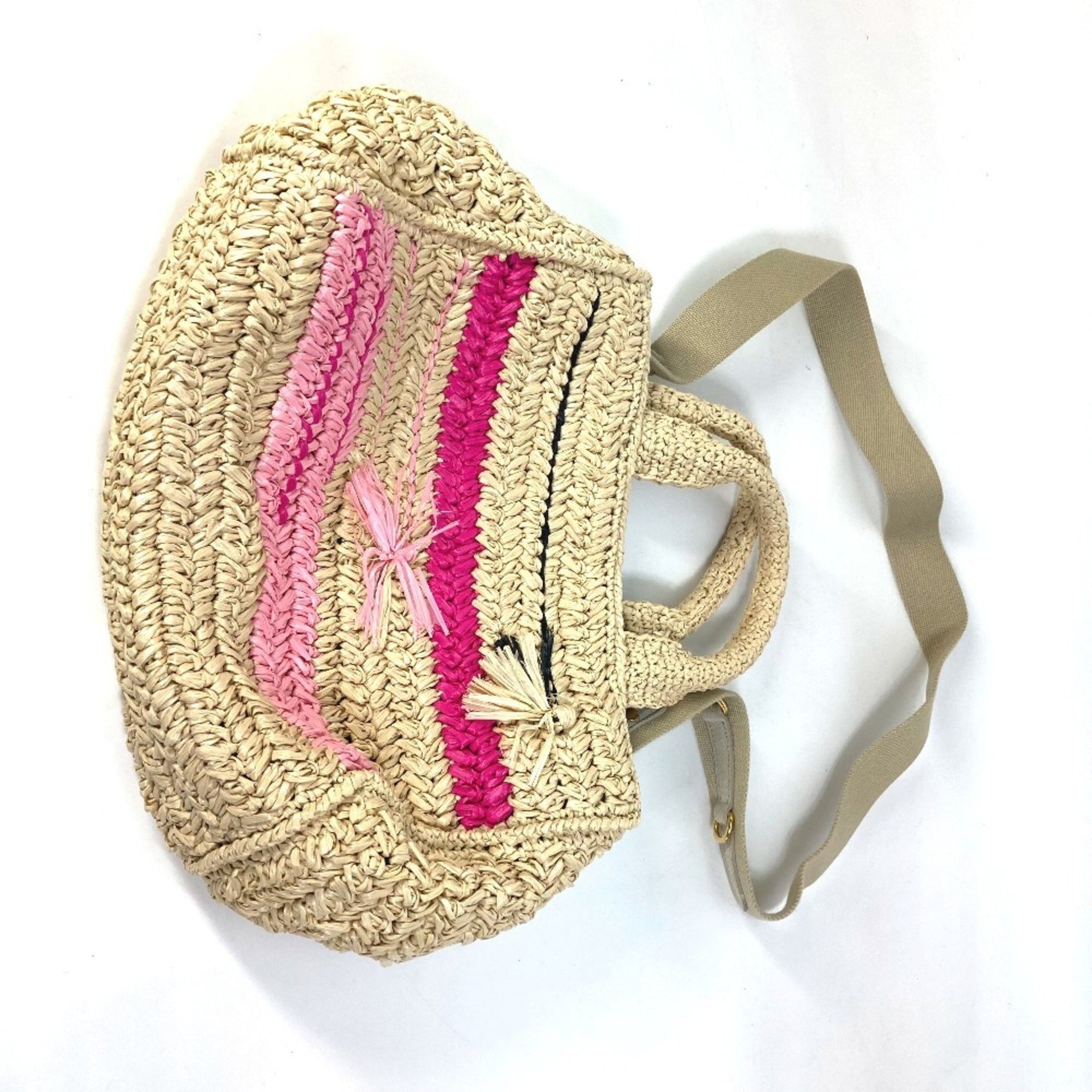 Prada Triangle Logo Canapa 2-Way Bag, Shoulder Handbag, Raffia, Women\'s, Beige