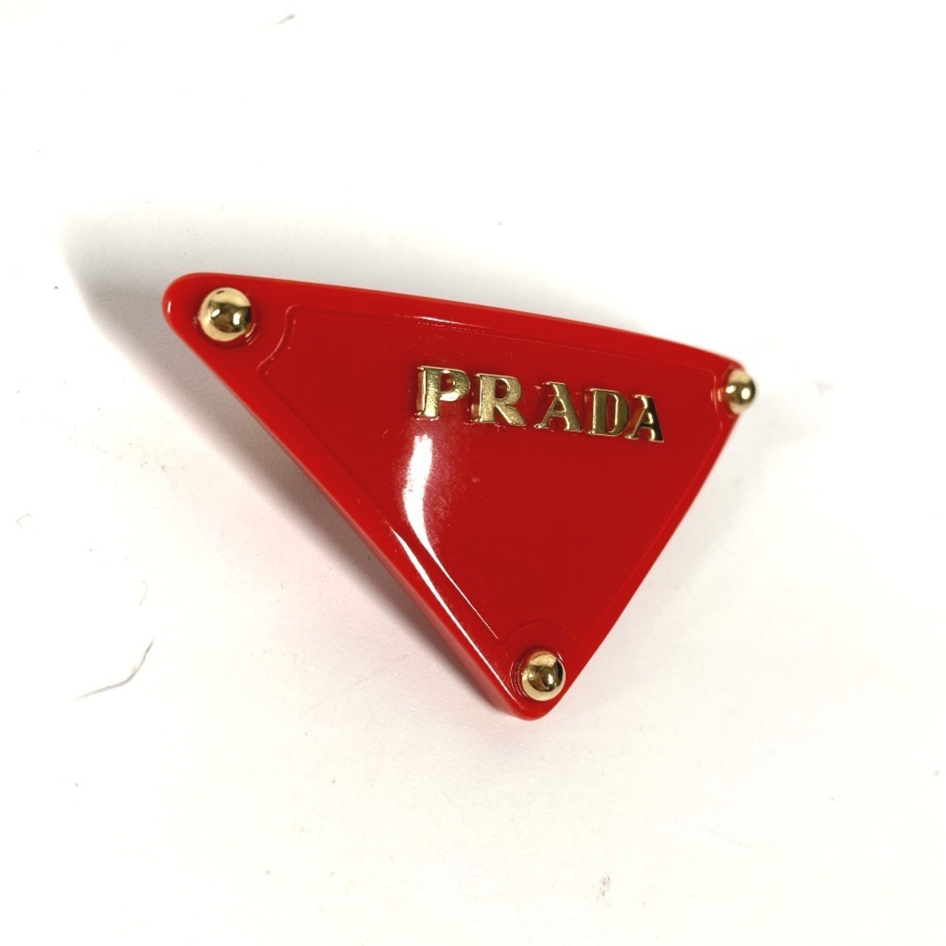 PRADA Triangle Logo Hair Accessory Hairpin Barrette Plastic Women\'s Red