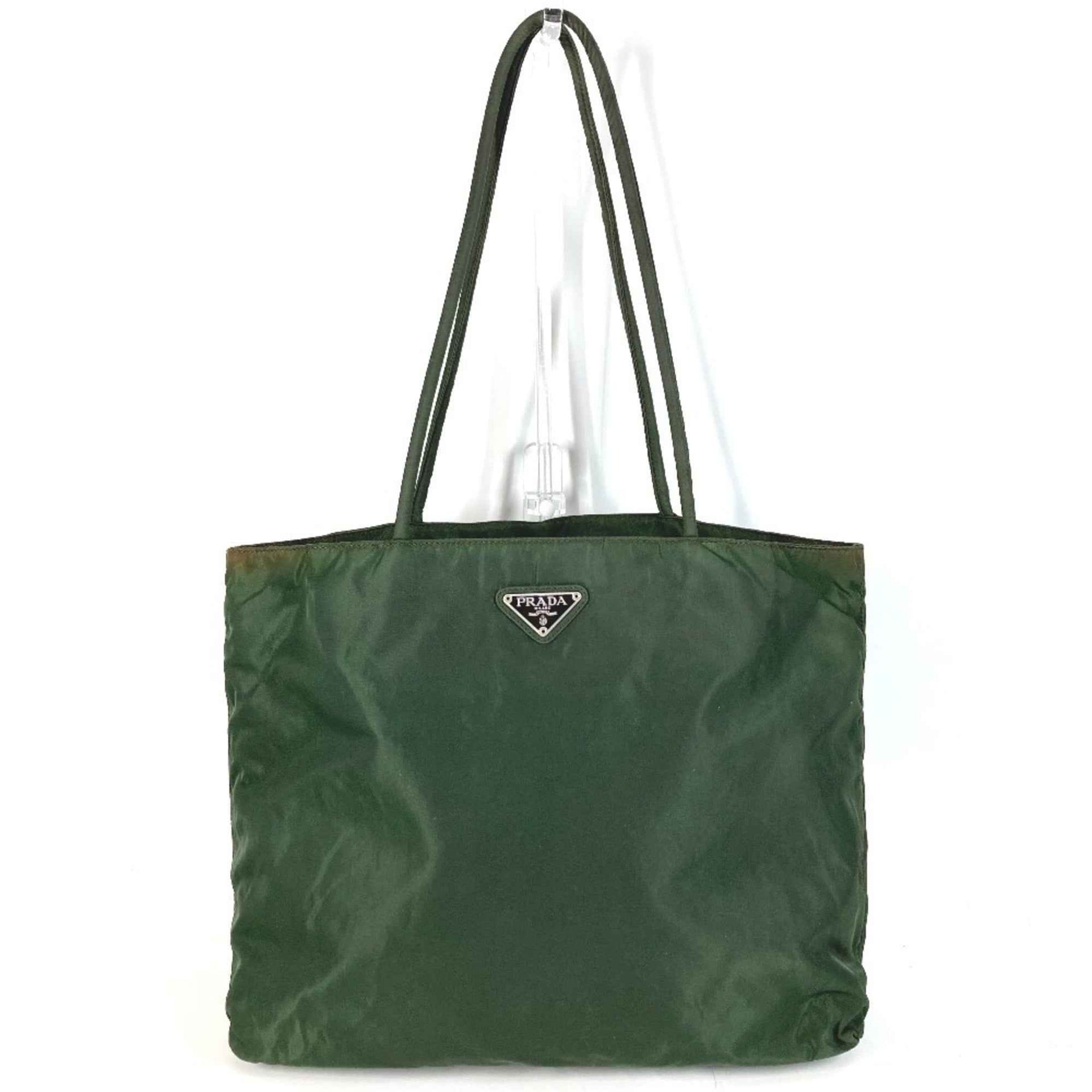 PRADA Triangle Logo Plaque Tote Bag Shoulder Nylon Men\'s Women\'s Khaki