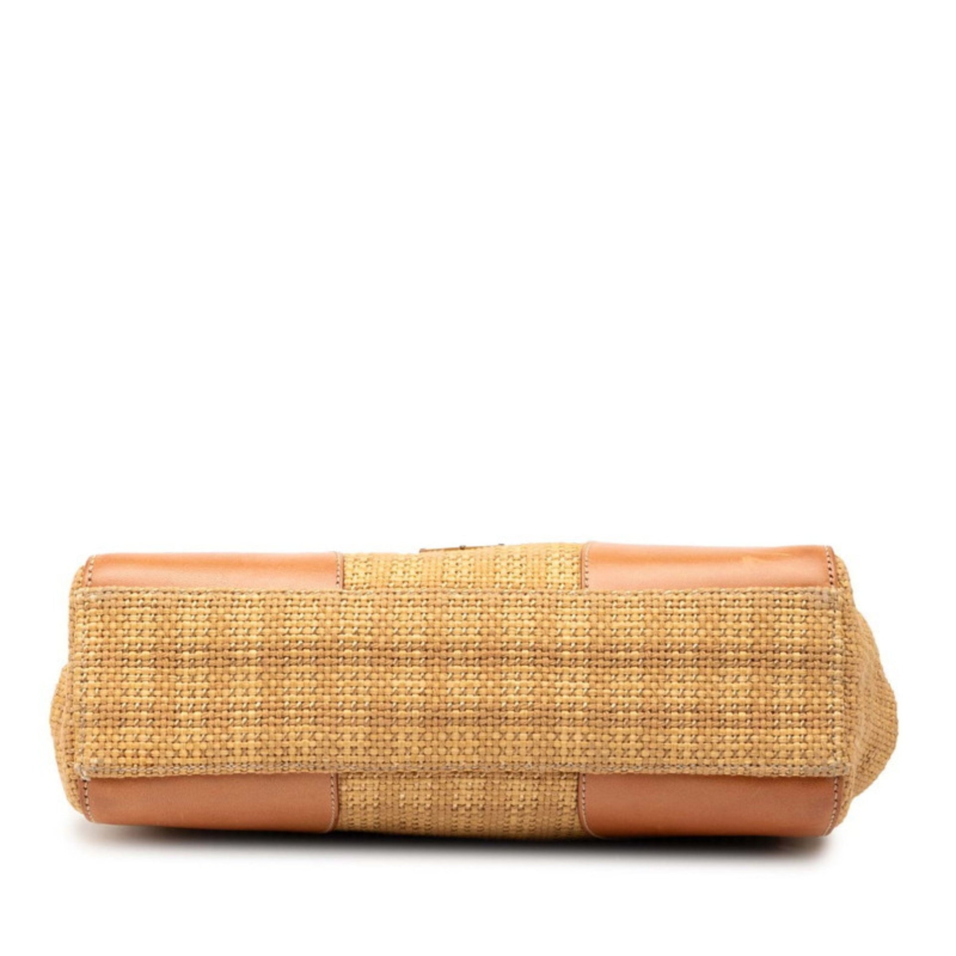 Prada Triangle Logo Plate Chain One-Shoulder Bag BR2530 Beige Green Straw Leather Women\'s PRADA
