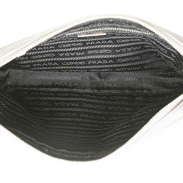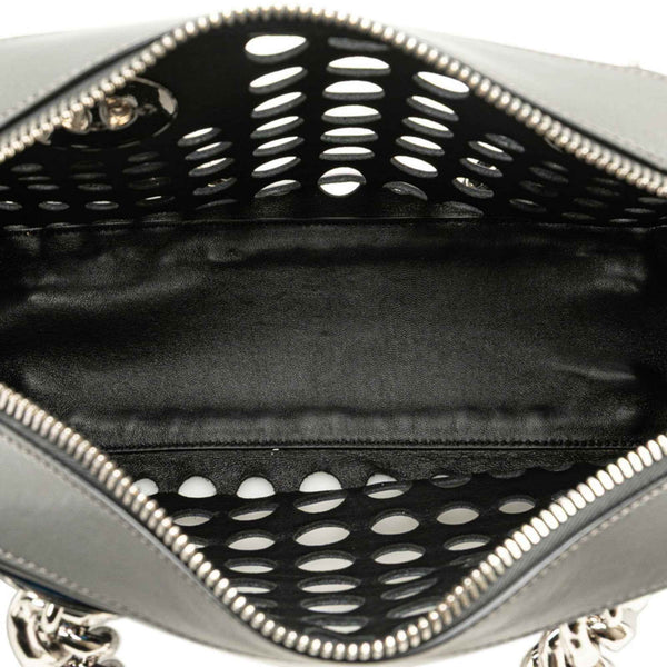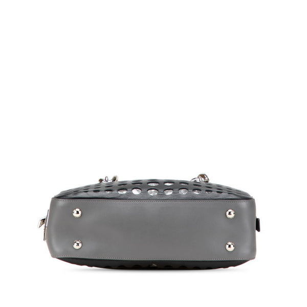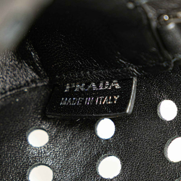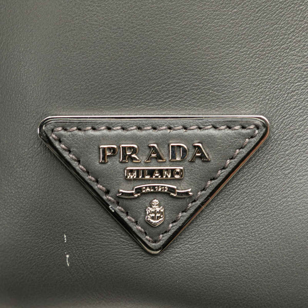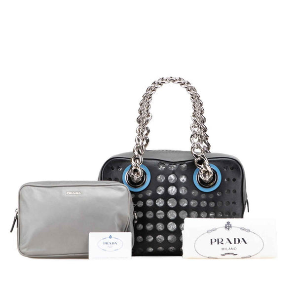 Prada Triangle Logo Plate Punching Chain Tote Bag Handbag 1BB017 Black Gray Leather Women\'s PRADA