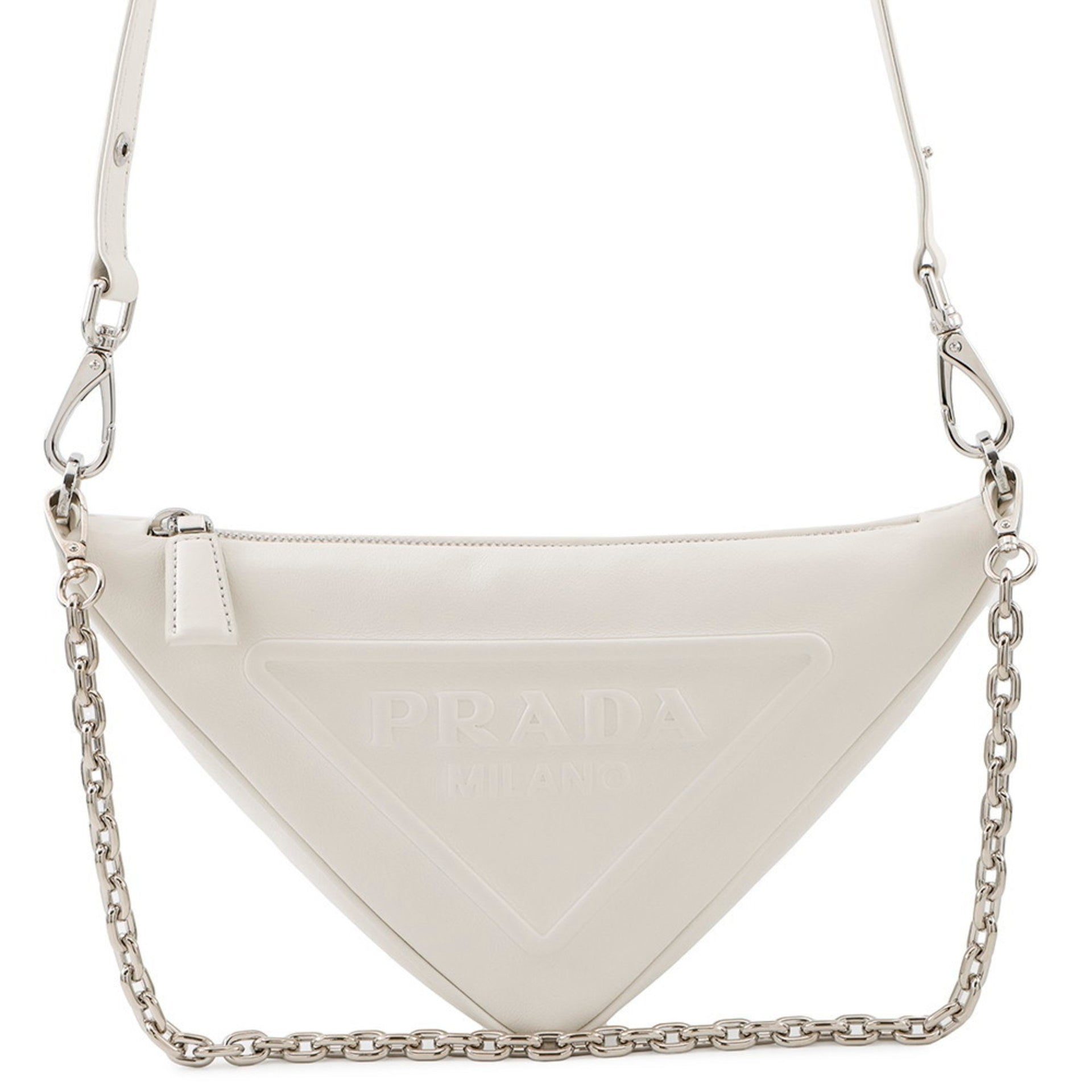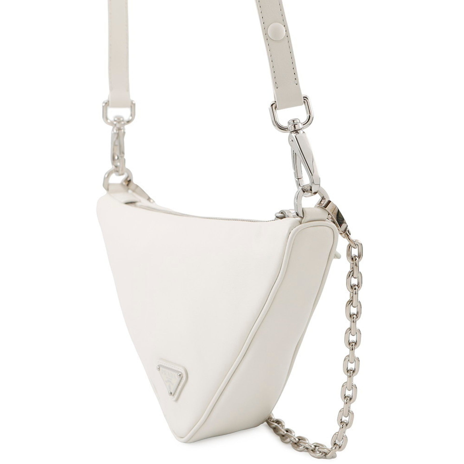 Prada Triangle Shoulder Bag in Calfskin Leather (1BC543) - White