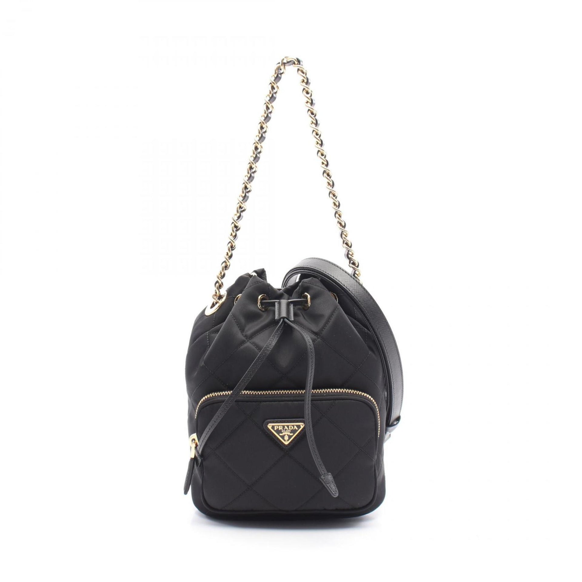 Prada VELA handbag, nylon, saffiano leather, women\'s, black, 1BH0382AOSF0002