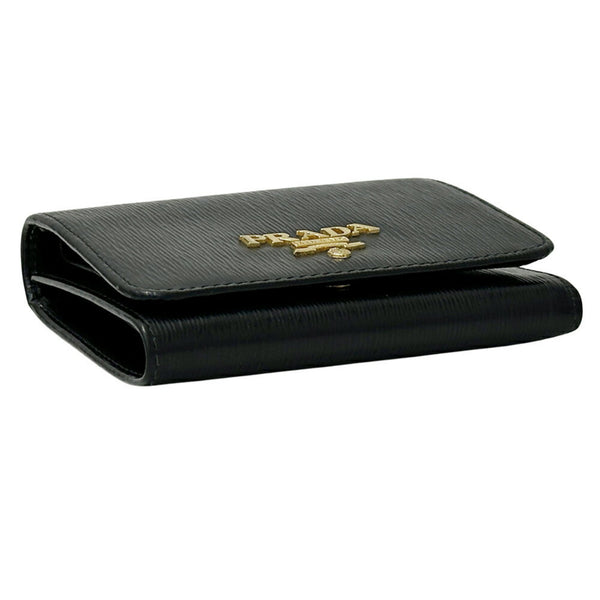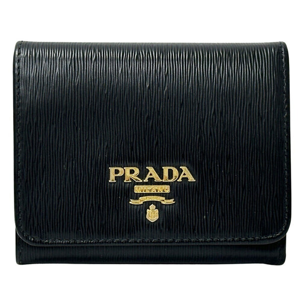 Prada Women\'s Tri-fold Leather Wallet in Black and Gold, Compact Mini