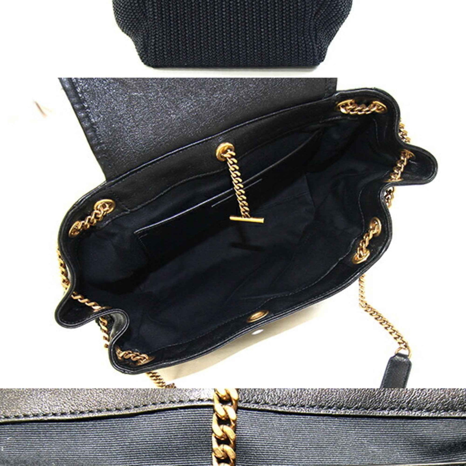 Saint Laurent Nolita Handbag 607465 Black Raffia Leather Chain Shoulder Bag for Women