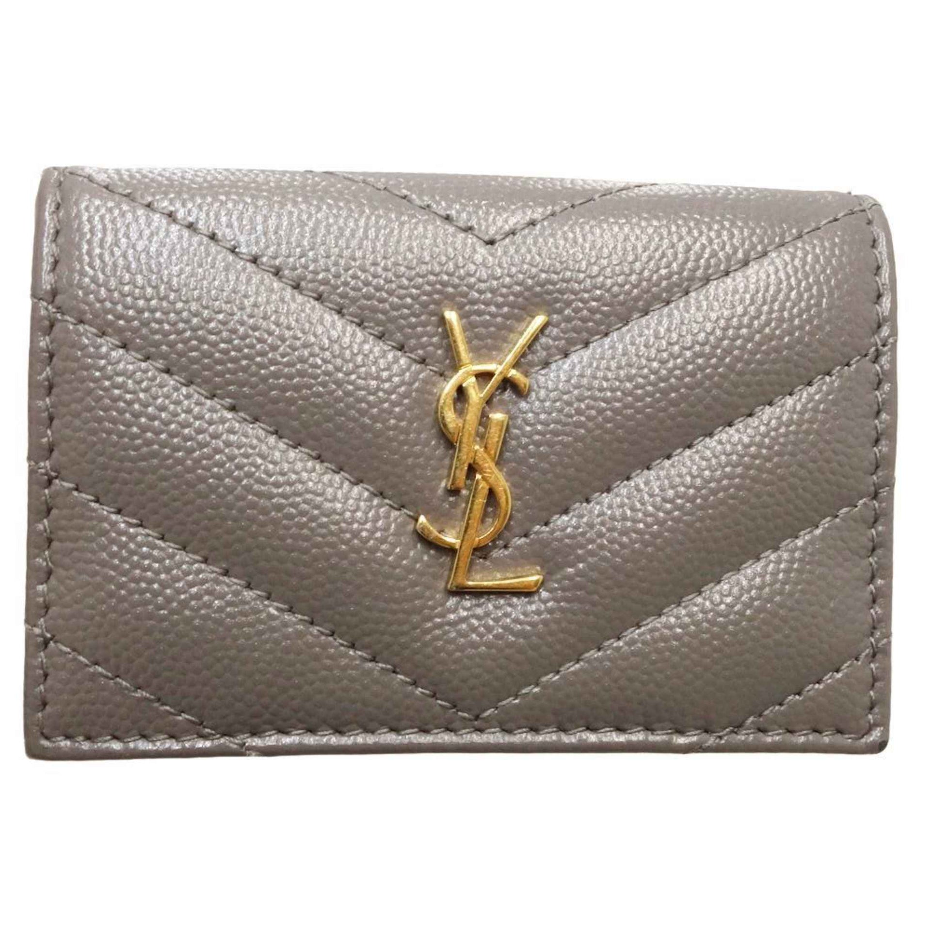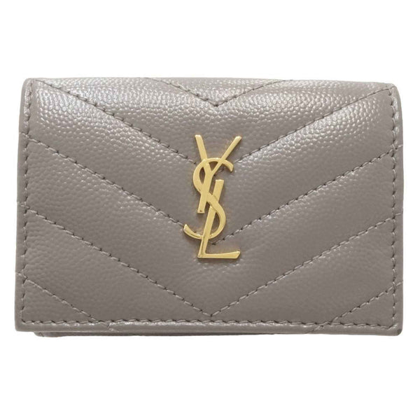 SAINT LAURENT Origami Tiny Wallet Cassandra Matelasse 668274 Trifold Calf Greige 180280