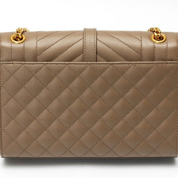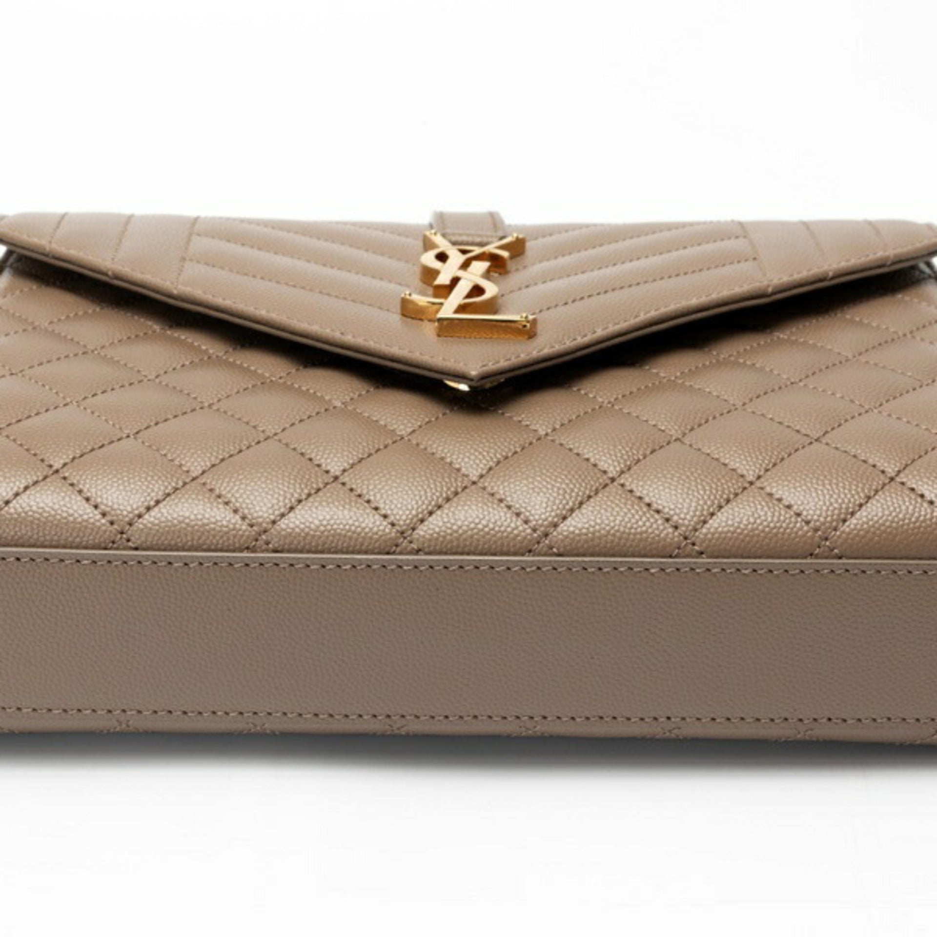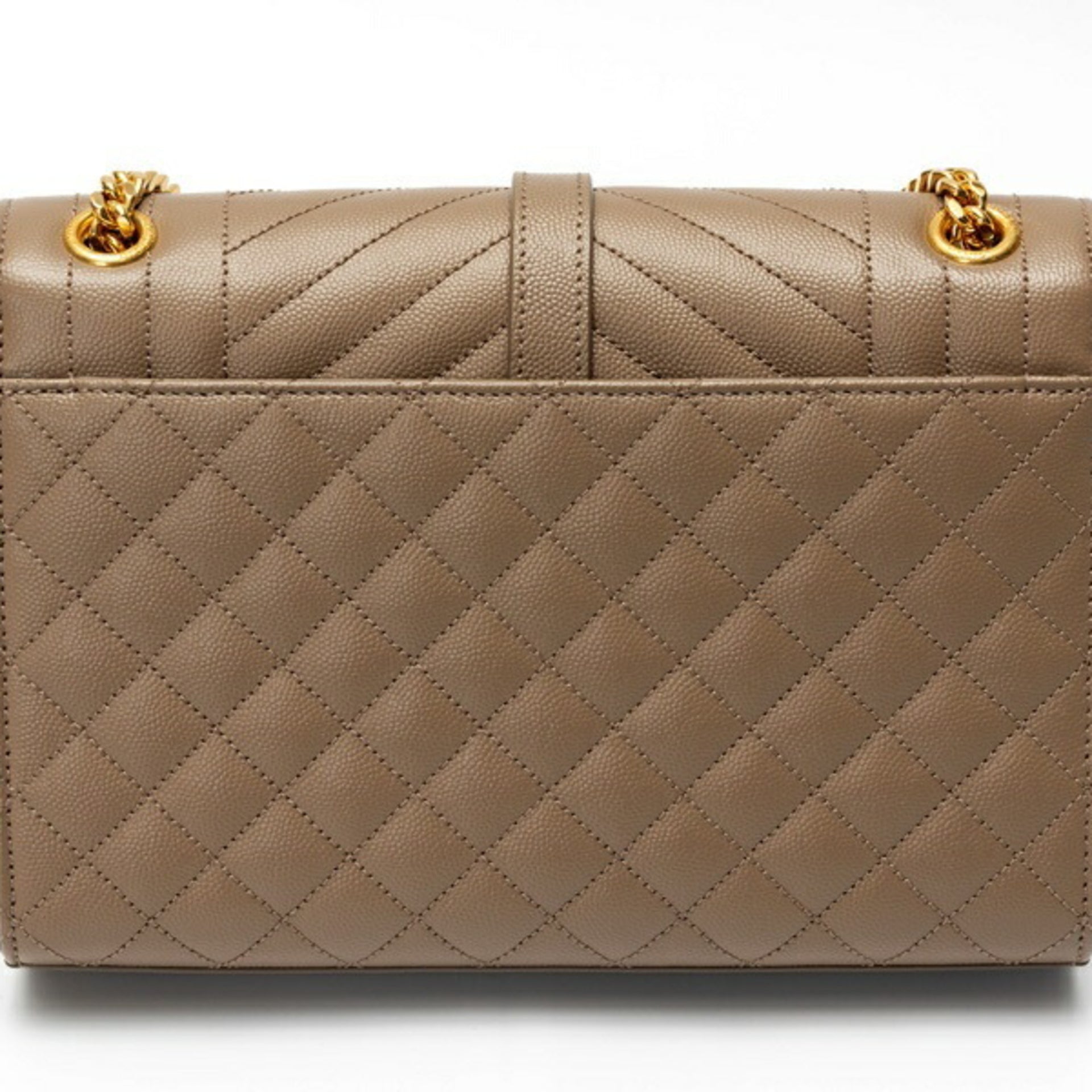 Saint Laurent SAINT LAURENT Envelope Medium Chain Shoulder Bag 600185 Grain de Poudre Quilted Leather Greige S-158096