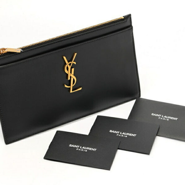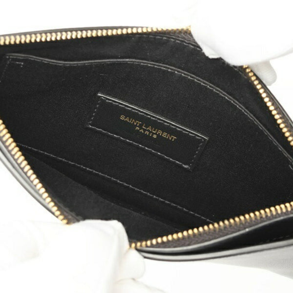 Saint Laurent SAINT LAURENT Flat Pouch Clutch Bag 636316 Leather Black S-159026
