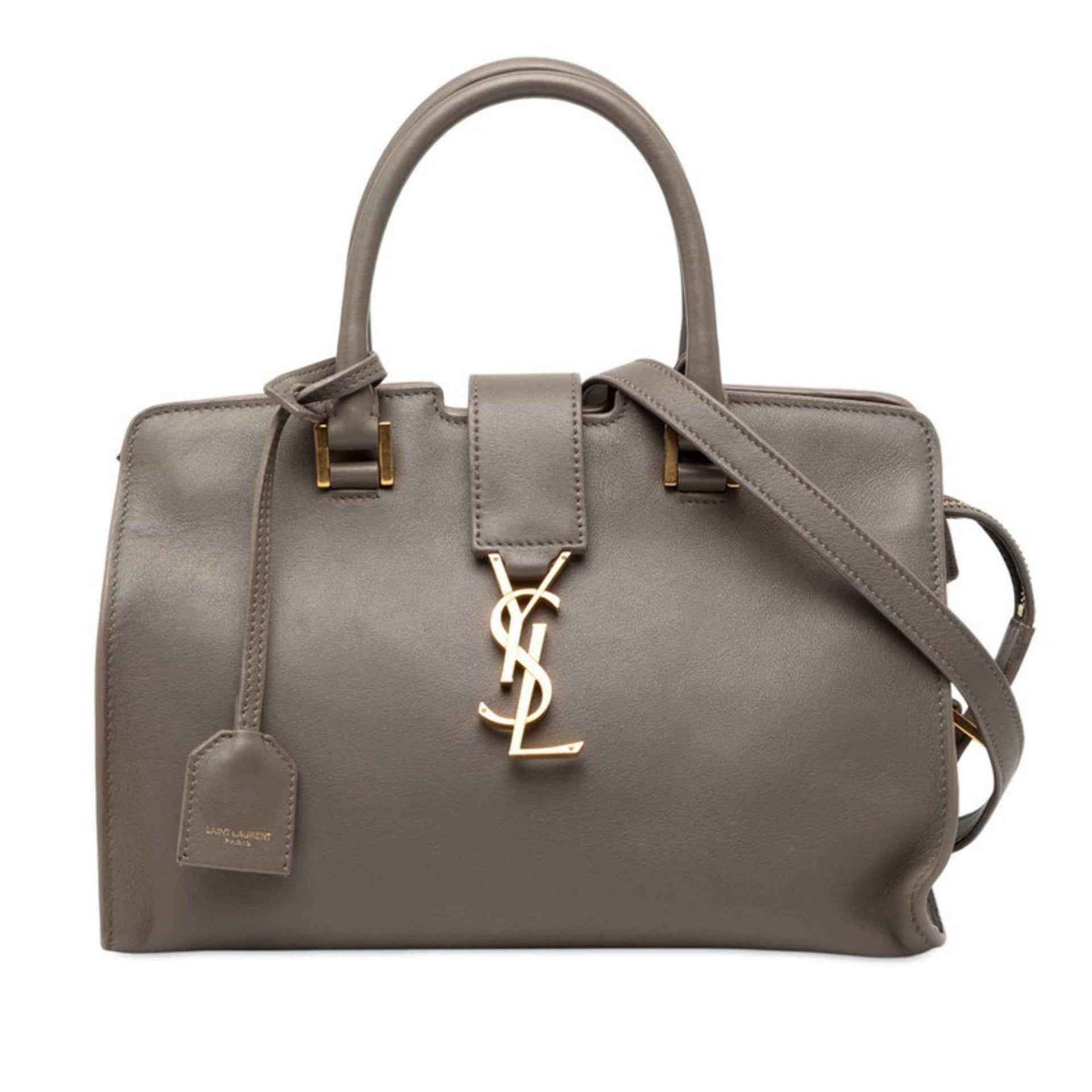Saint Laurent YSL Logo Baby Cabas Handbag/Shoulder Bag 2WAY 424868 Gray Leather Women\'s SAINT LAURENT