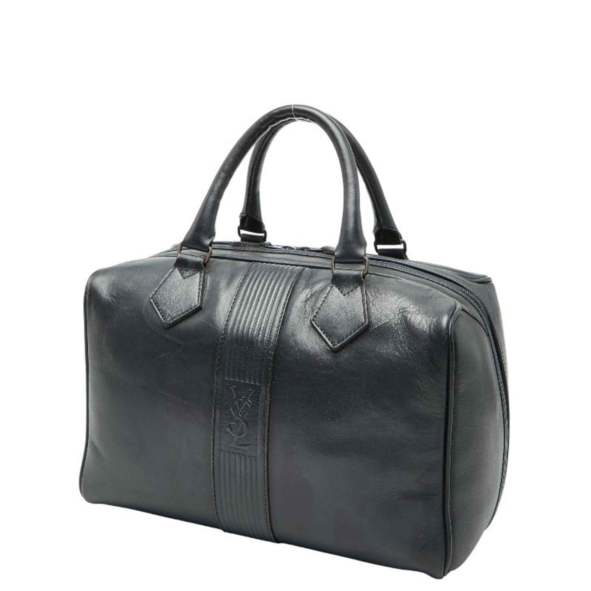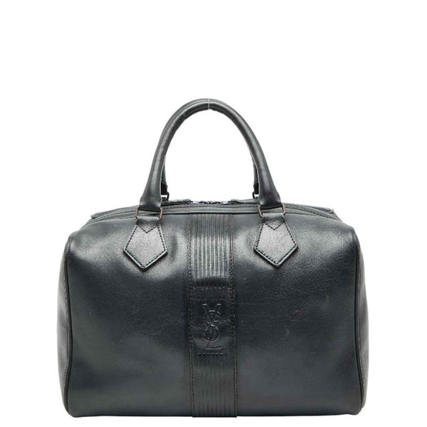 Saint Laurent YSL logo mini Boston bag in black leather for women.