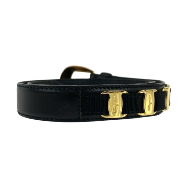 Salvatore Ferragamo 236089 Black Gold Hardware Leather Belt for Women