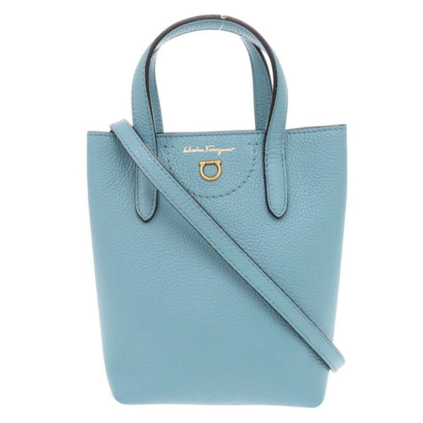 Salvatore Ferragamo Gancini GU-220024 Leather Blue Handbag Shoulder Bag 0494Salvatore