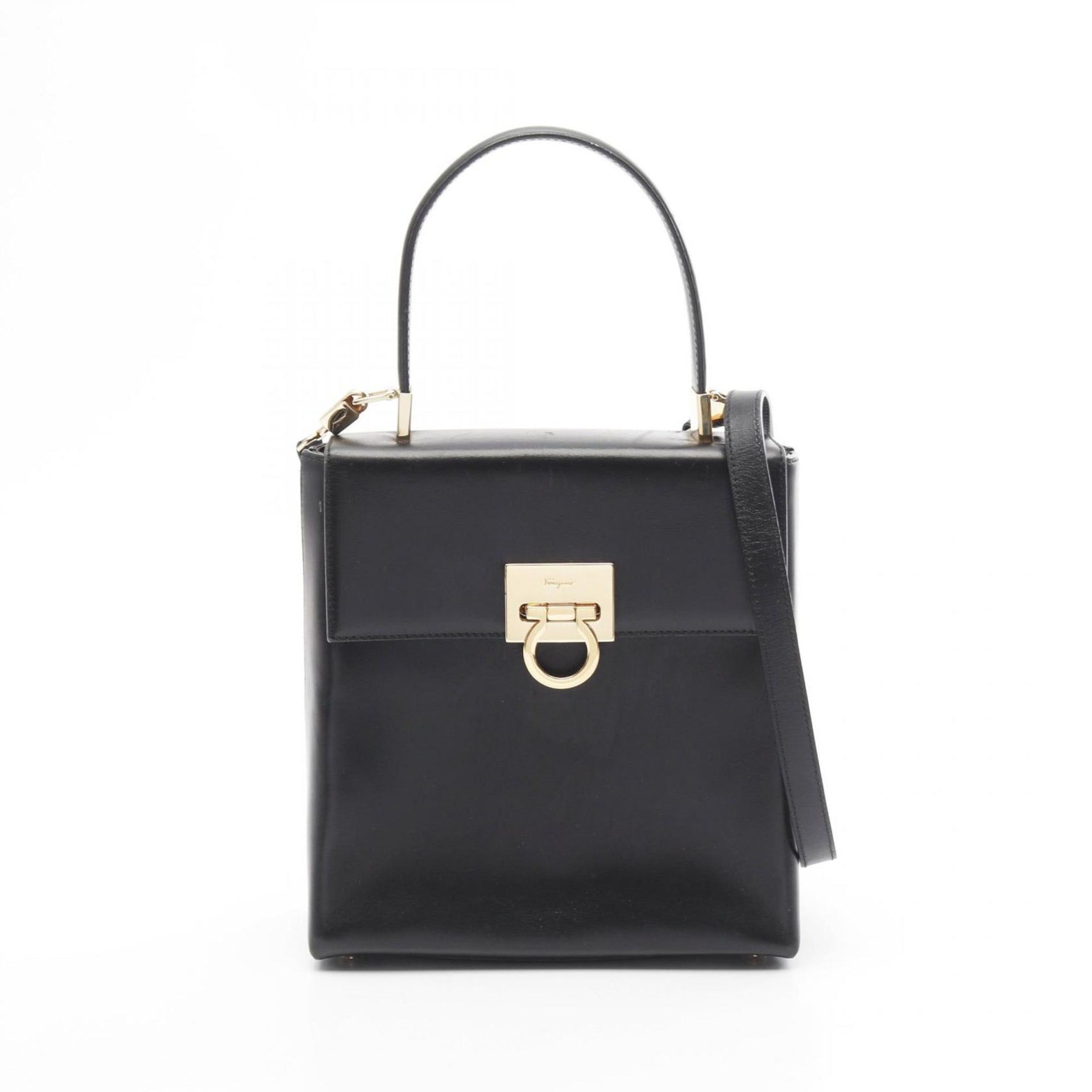 Salvatore Ferragamo Gancini handbag, leather, women\'s, black, size 21 8658