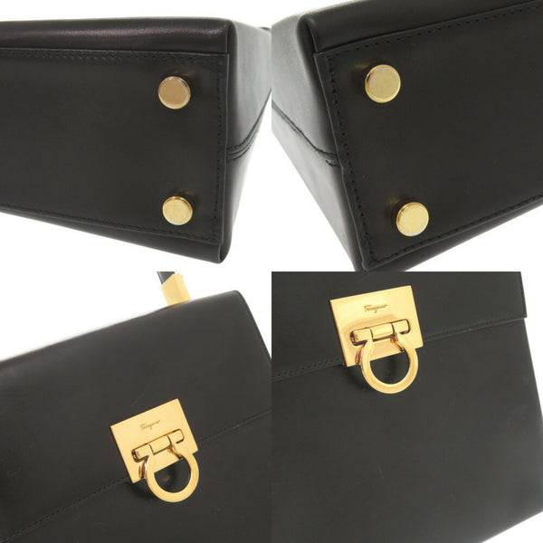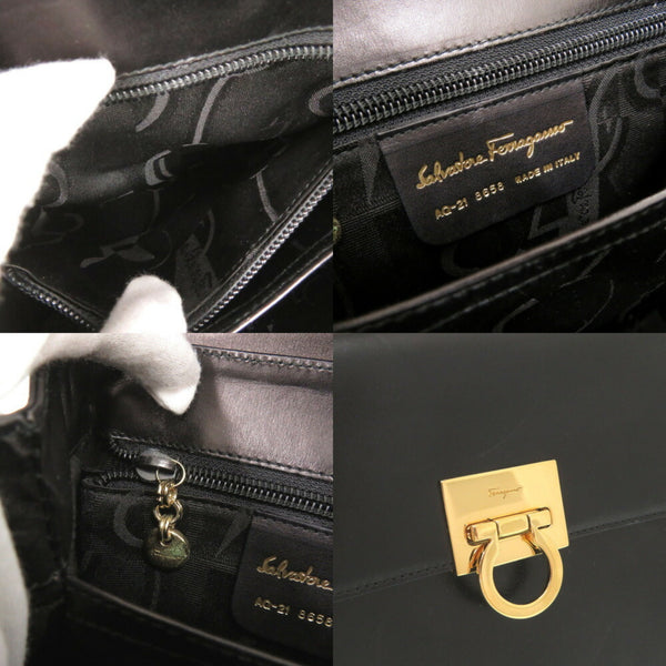 Salvatore Ferragamo Gancini Leather Black Handbag/Shoulder Bag 0857Salvatore