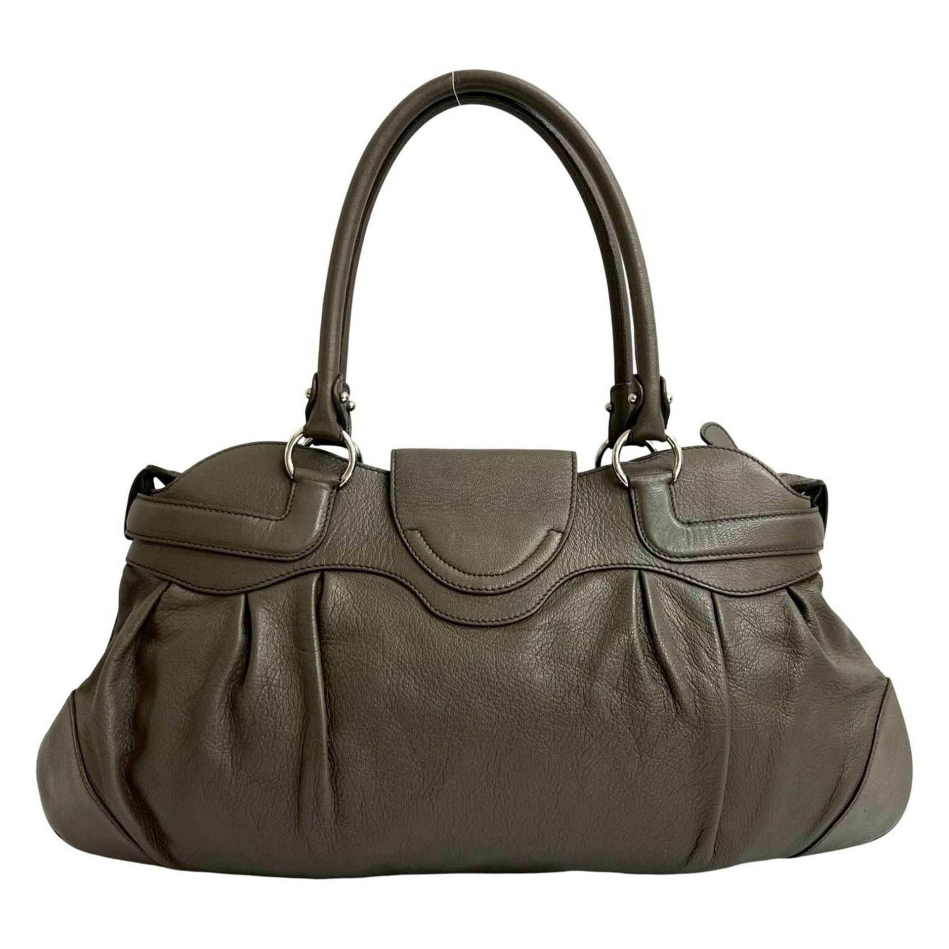 Salvatore Ferragamo Gancini Leather Handbag/Boston Bag, Gray, 45171