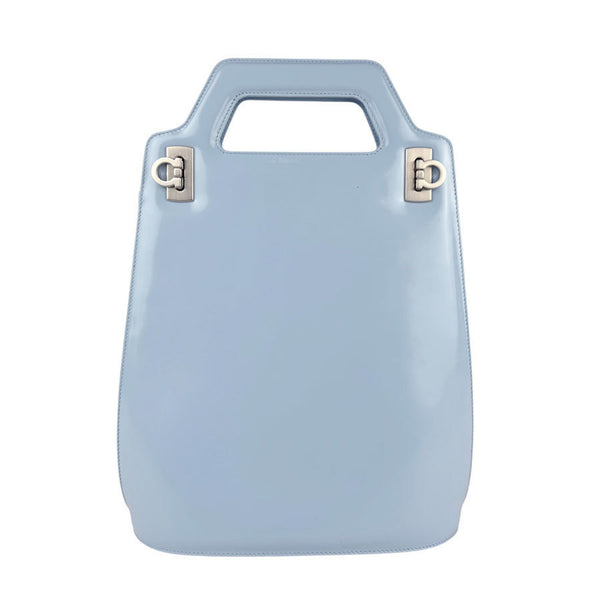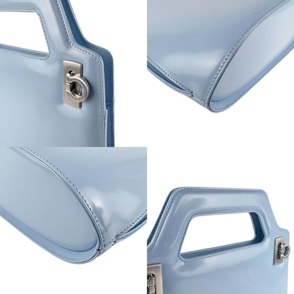 Salvatore Ferragamo Gancini Leather Handbag Shoulder Bag in Light Blue and Silver, Women\'s, Z6989
