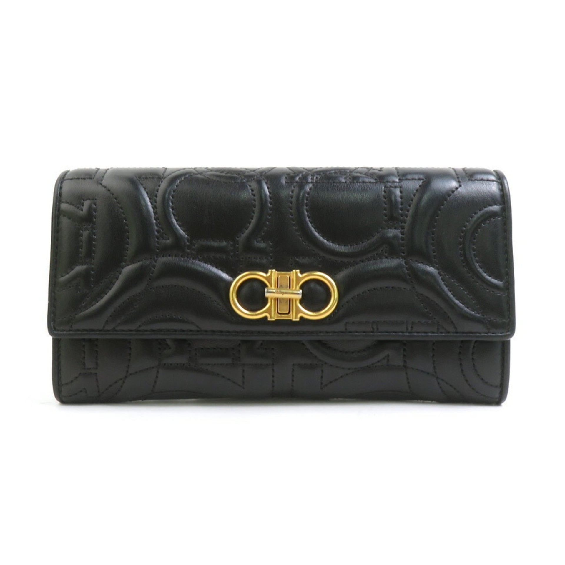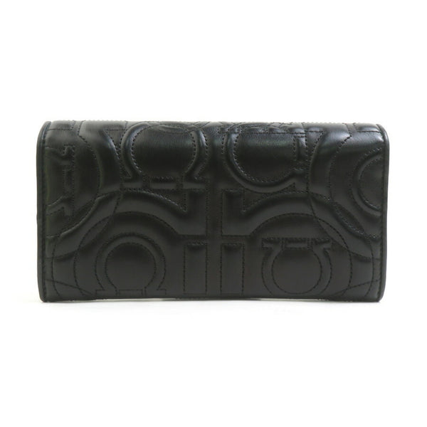 Salvatore Ferragamo Gancini Leather Long Wallet in Black, Women\'s, 56267a