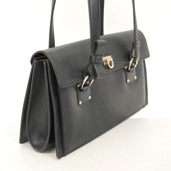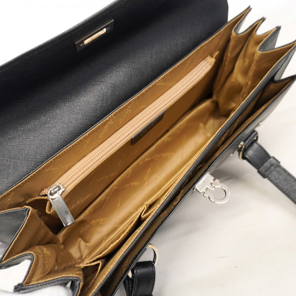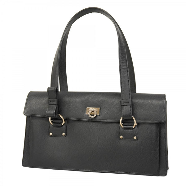 Salvatore Ferragamo Gancini Leather Shoulder Bag, Black, Women\'s