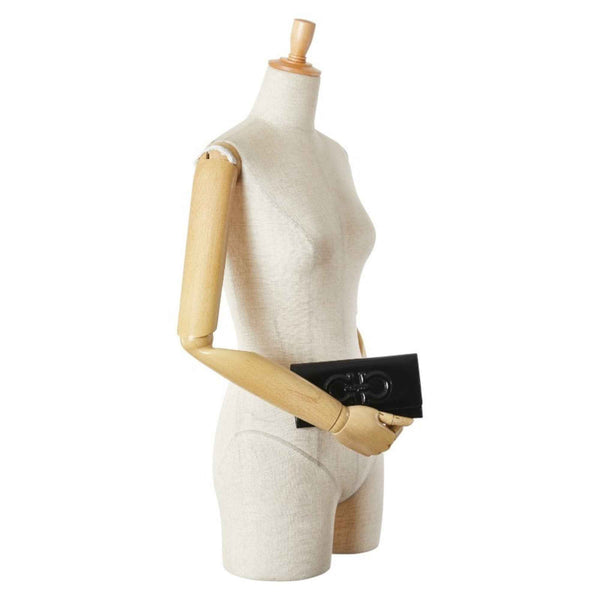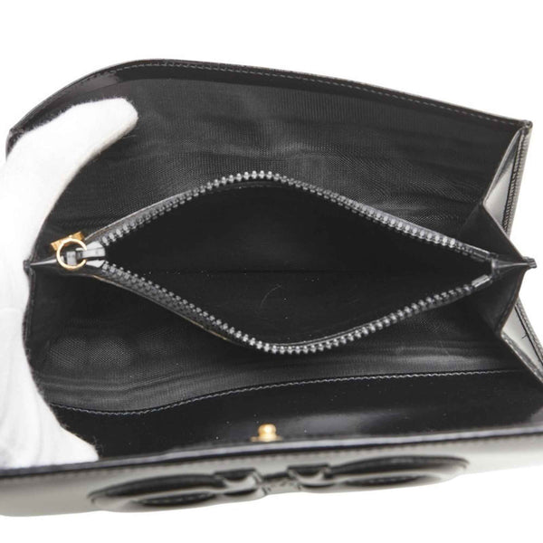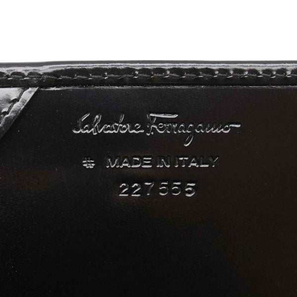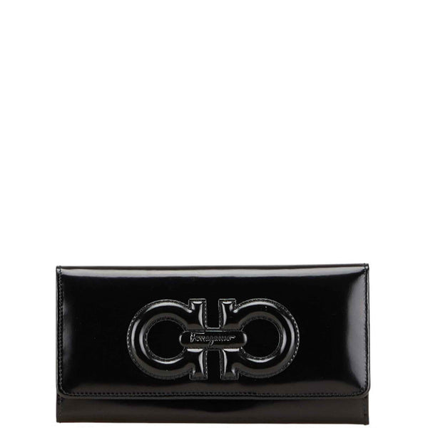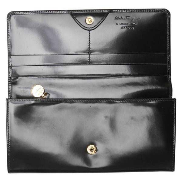 Salvatore Ferragamo Gancini Long Wallet 227555 Black Enamel Leather Women\'s