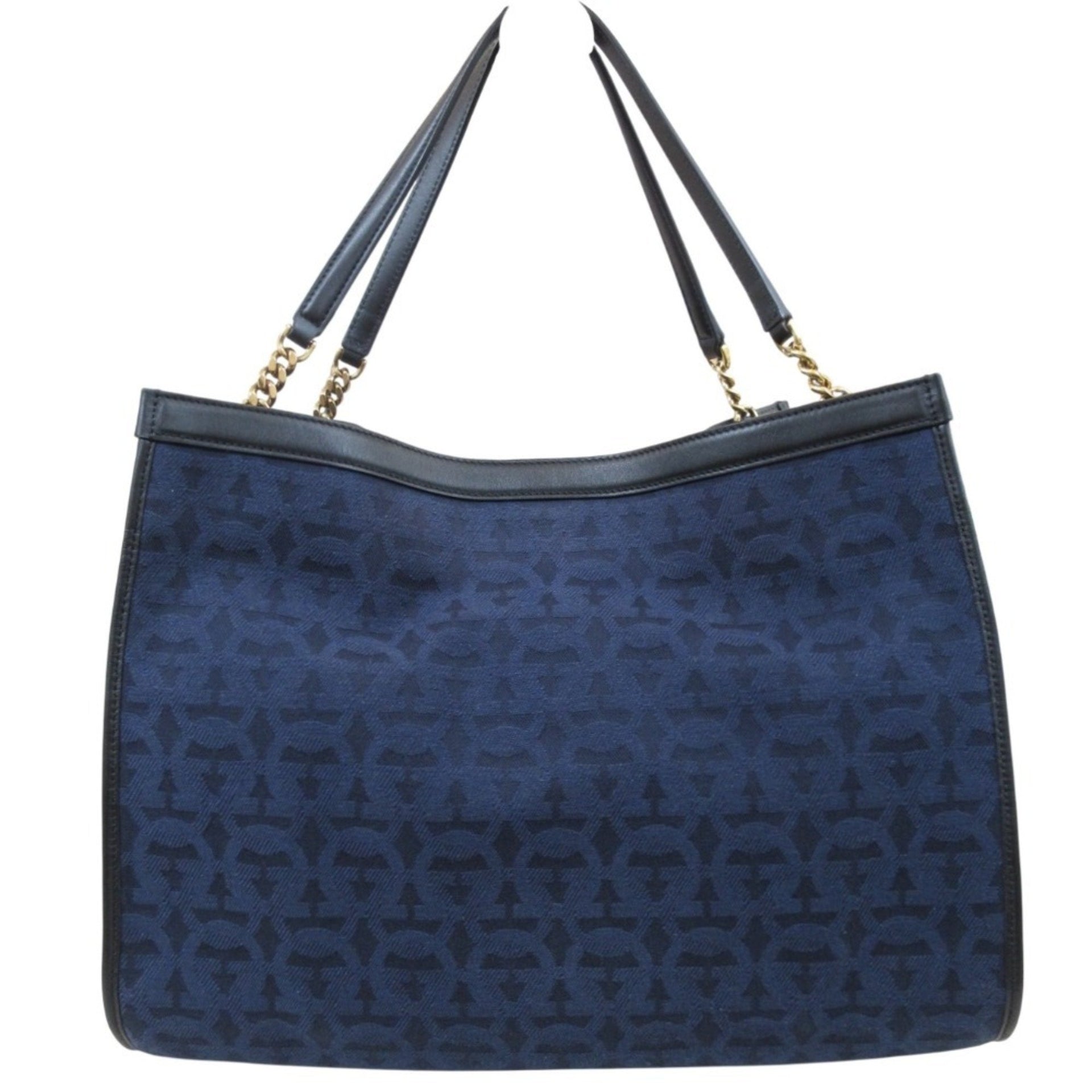 Salvatore Ferragamo Gancini Monogram Chain Tote Bag EE-21 O883 Navy Women\'s