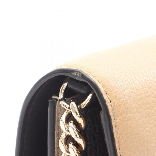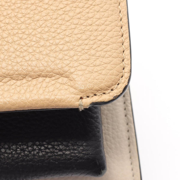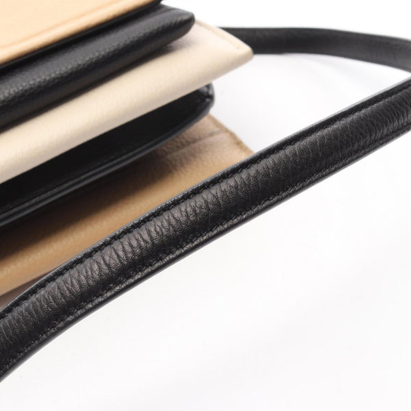 Salvatore Ferragamo Gancini Shoulder Bag, Leather, Women\'s, Beige, Black, Ivory, Size 21, H984