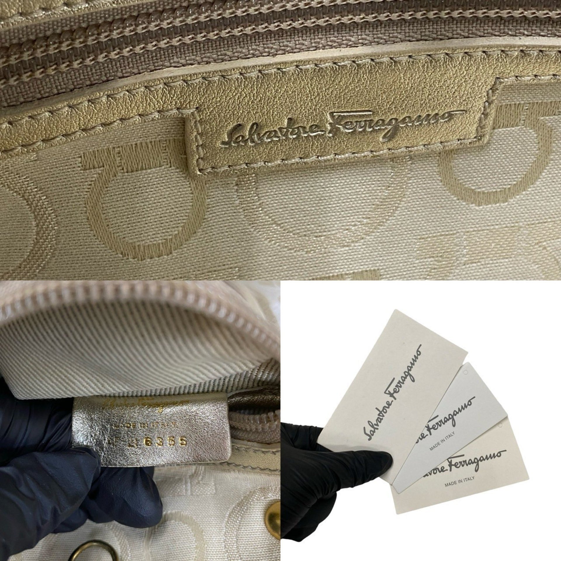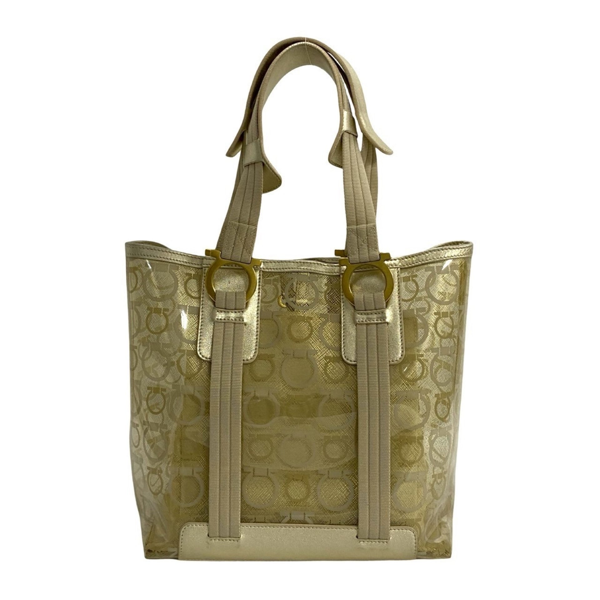 Salvatore Ferragamo Gancini Vinyl and Leather Tote Bag/Handbag in Gold (78937)